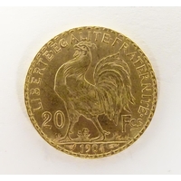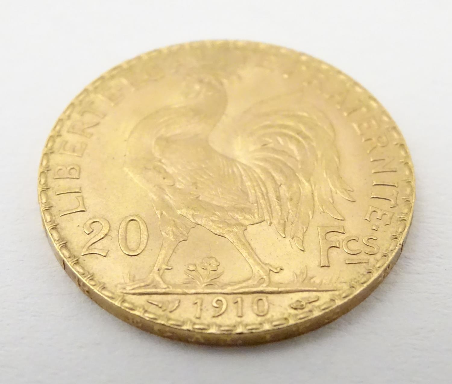 A French Republic 20 franc gold coin, 1910, approx. 6.45g