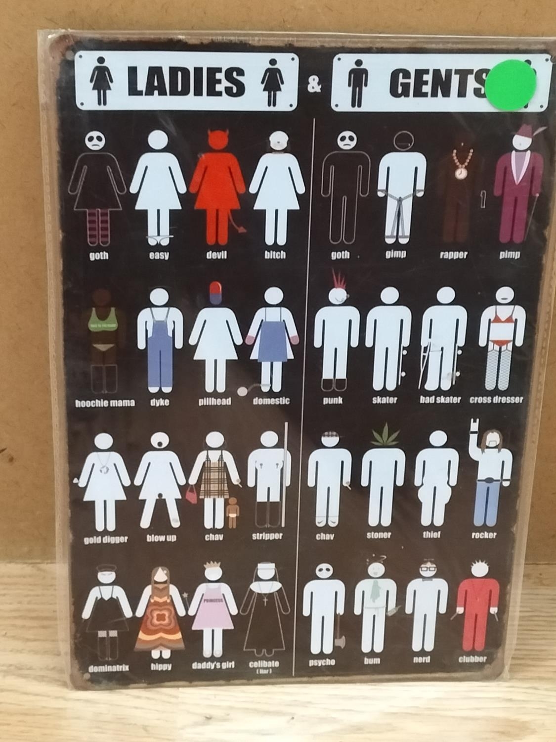Tin Signs (2), Comic Con and Comical Ladies & Gents. 30cm x 20cm.