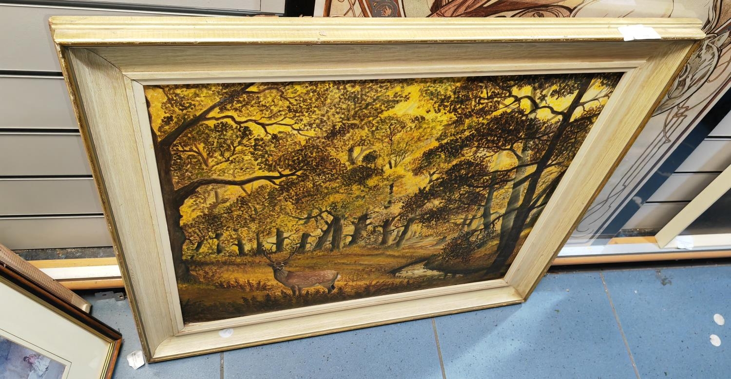 Framed Oil On Board Of A Deer In The Forest Signed