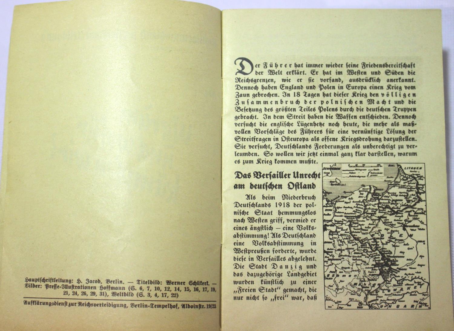 German Third Reich propaganda booklet Warum und Wofür Kämpfen wir?, cover split down seam. P&P Group 1 (£14+VAT for the first lot and £1+VAT for subsequent lots)