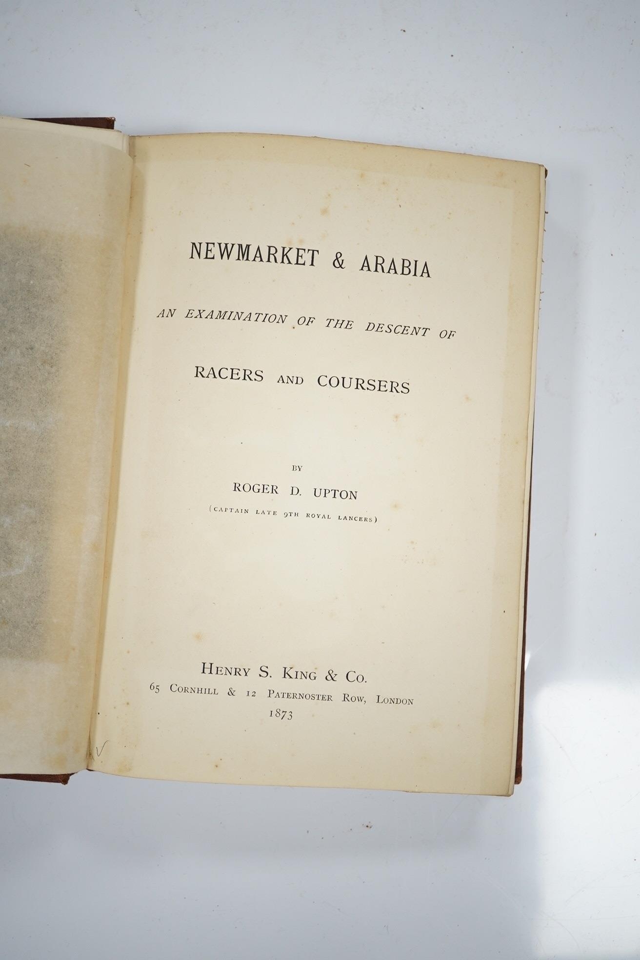 ° ° Upton, Roger D. - Newmarket and Arabia: an examination of the descent of racers and coursers. hand coloured frontis. and 4 folded tables; original gilt pictorial cloth, cr. 8vo. 1873