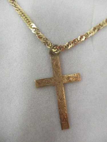9ct GOLD CROSS ON 9ct GOLD CHAIN 3.77G