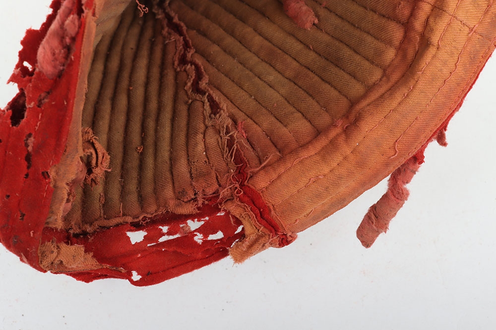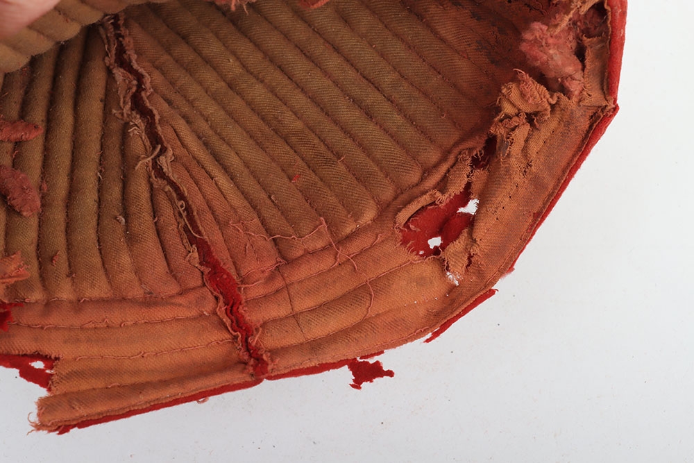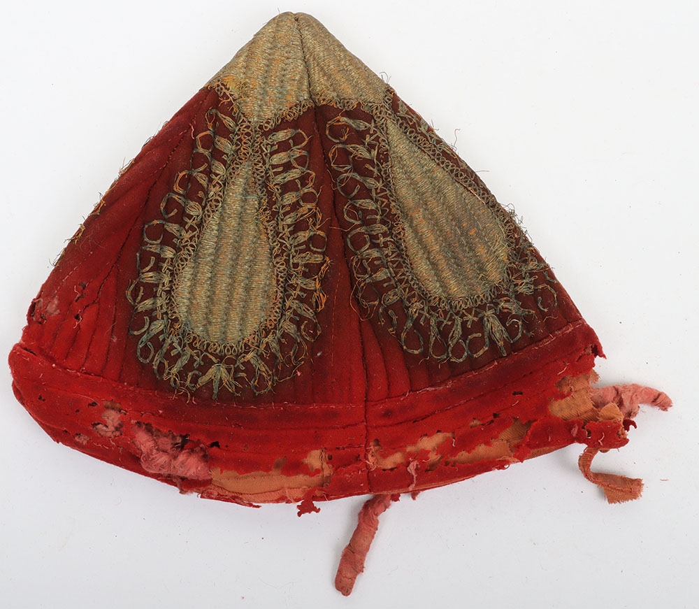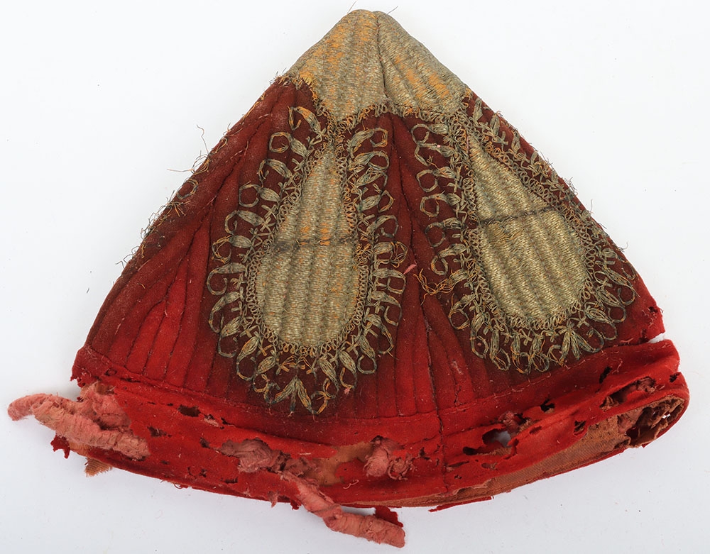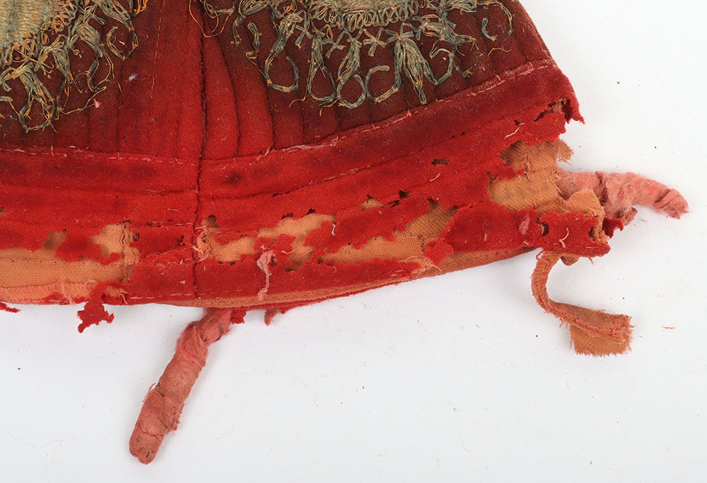 Indian Army Kulla, made from scarlet cloth with gilt embroidery. In poor and damaged condition