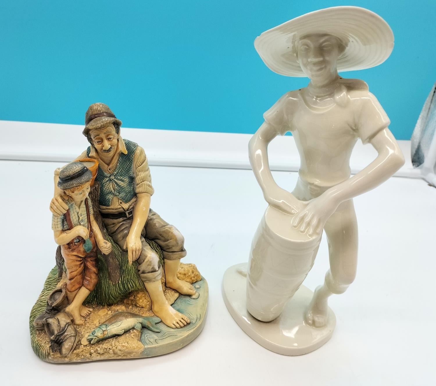 Naturecraft Figure 'Grandad's Yarn' plus Another (with chip to Hat). Tallest being 25cm.