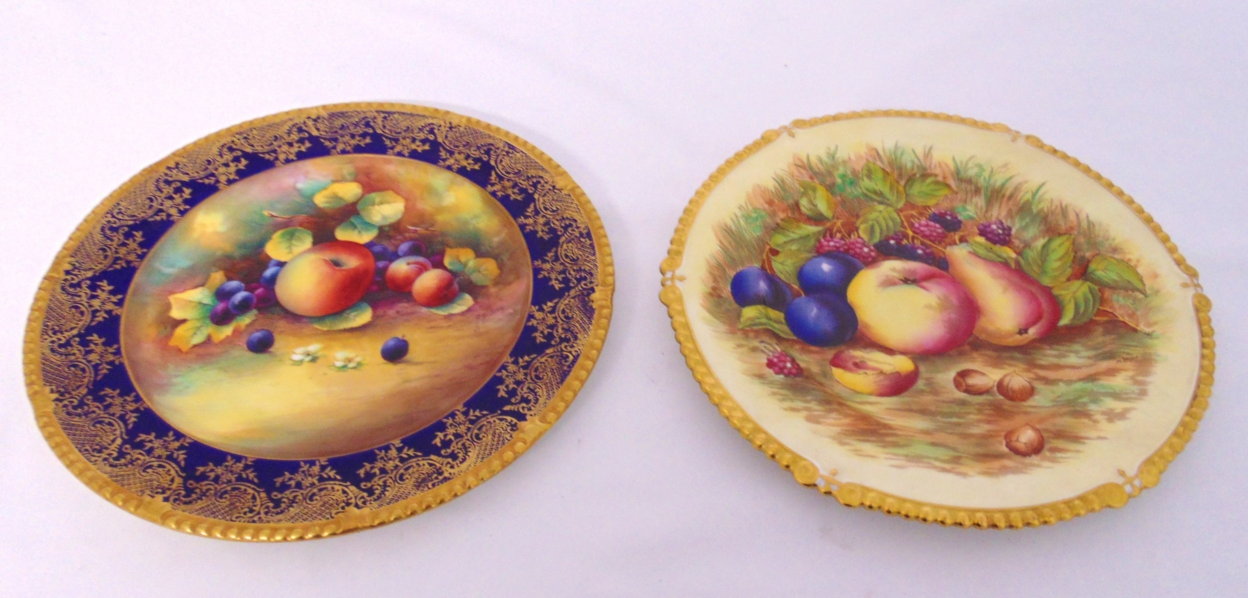 Aynsley and Paragon cabinet plates decorated with fallen fruit, marks to the bases, 27cm (d)