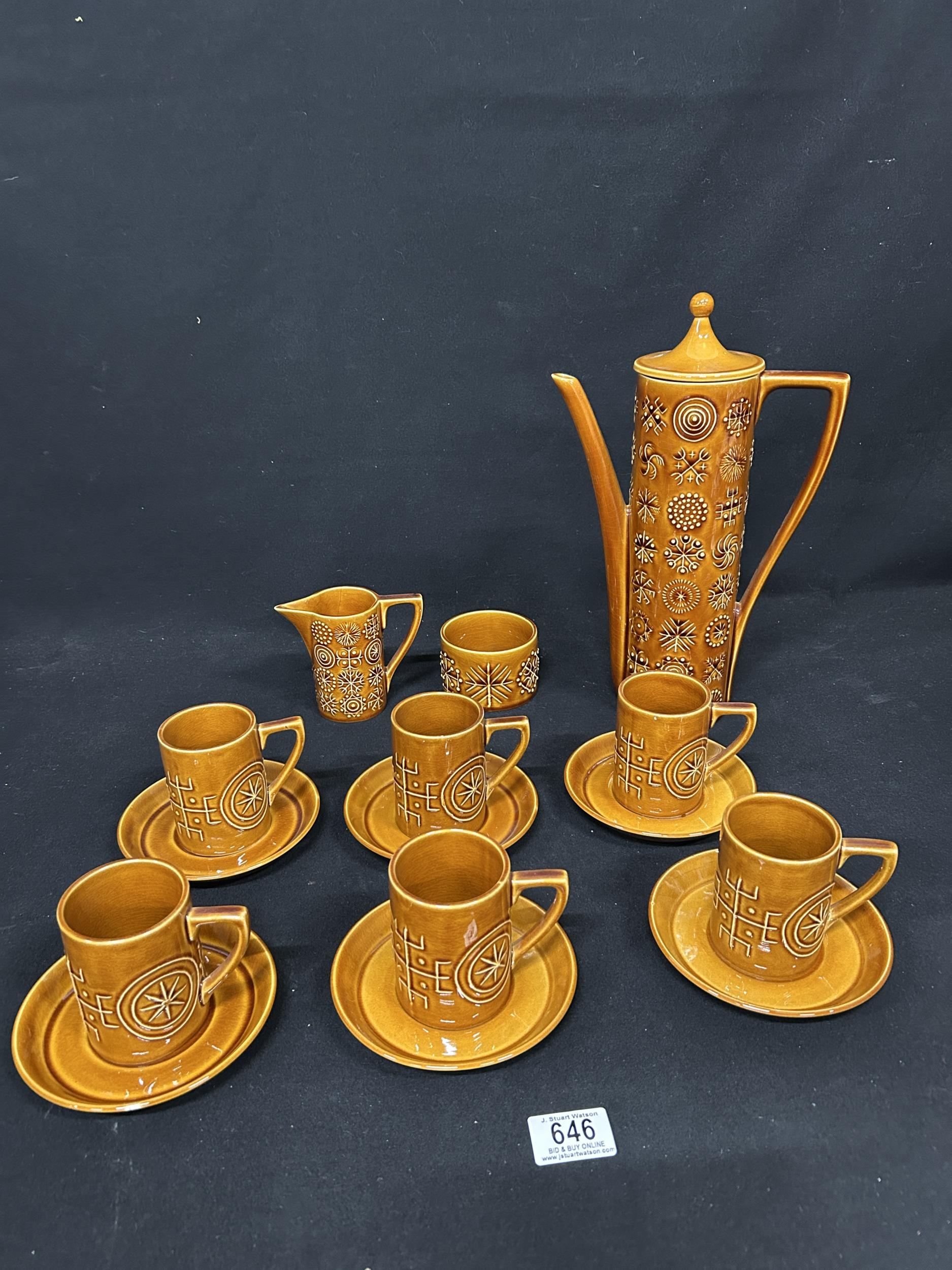 Portmeirion Totem Coffee Set, no damage (small mark in glaze on one saucer)