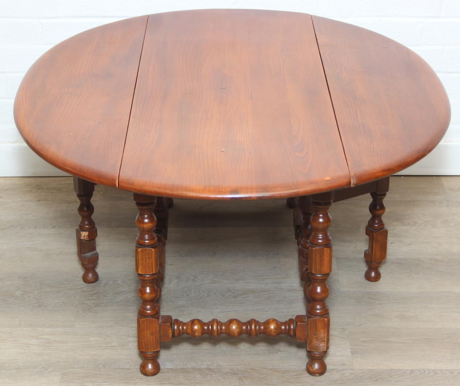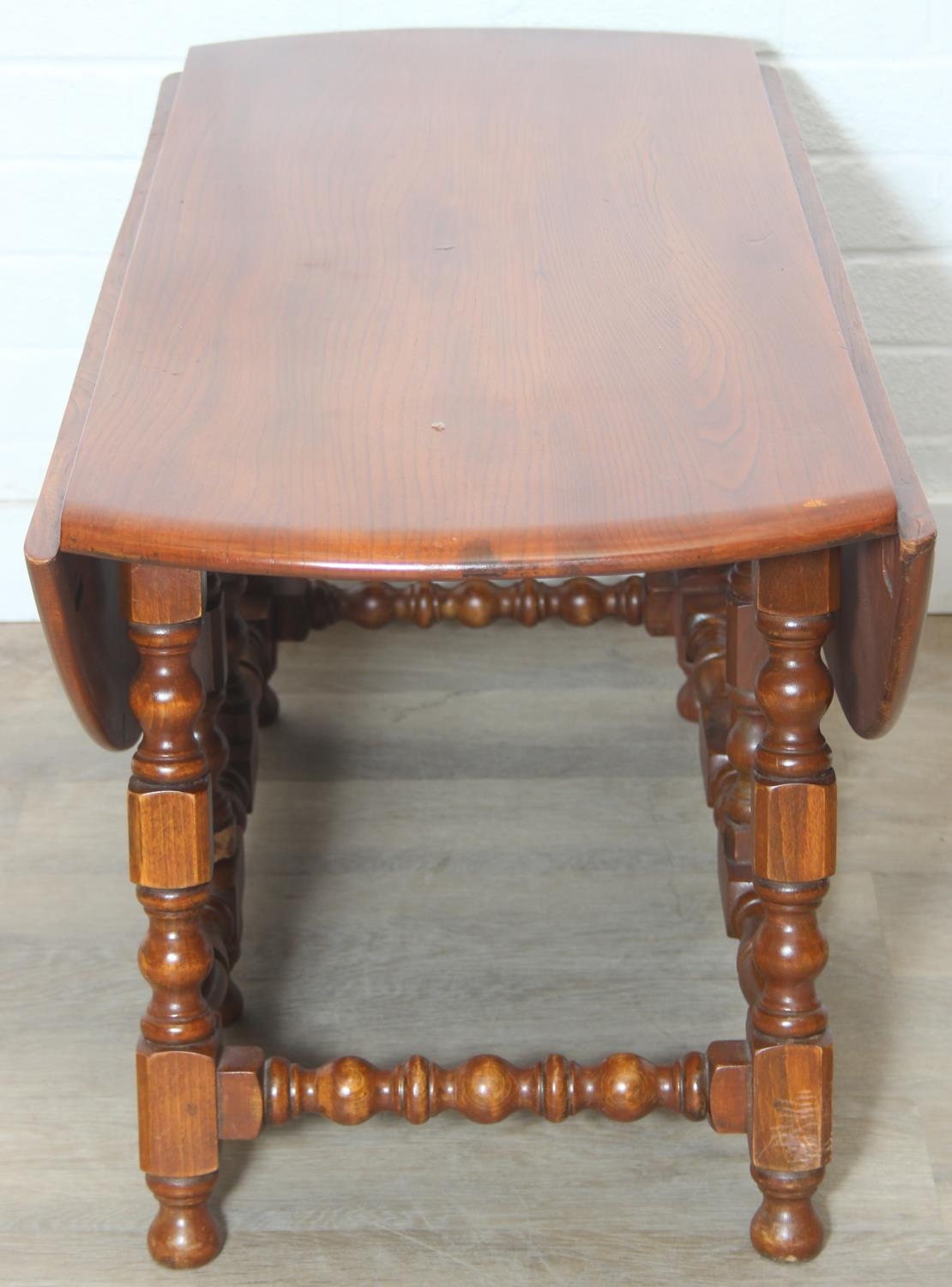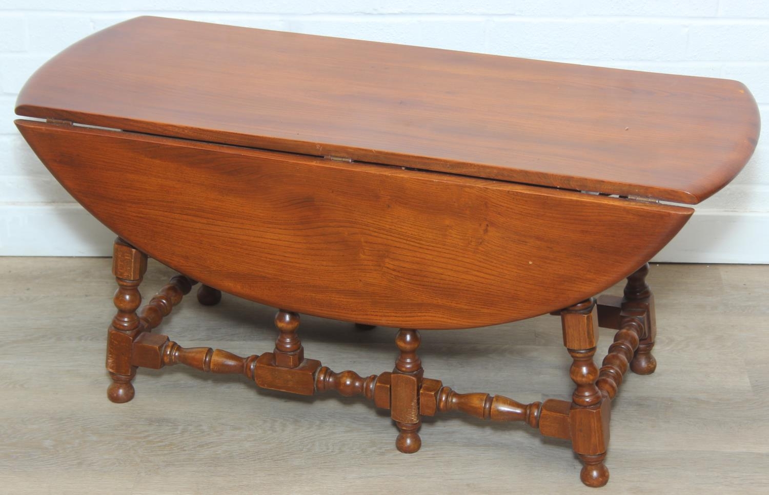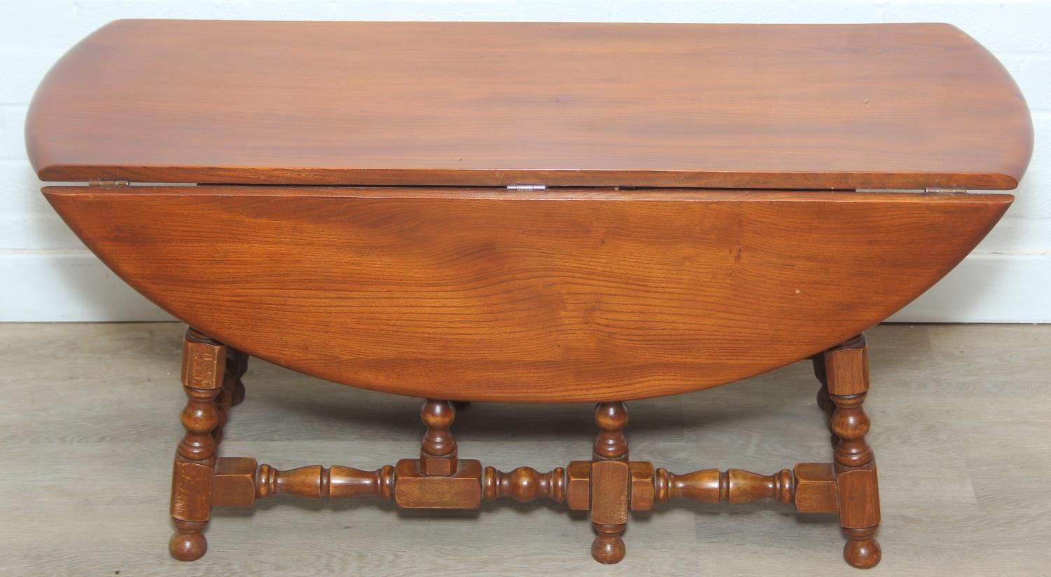 A vintage Ercol low drop leaf table with elm top, 107cm x 45cm (extending to 93cm) x 48cm