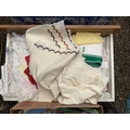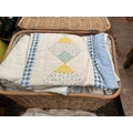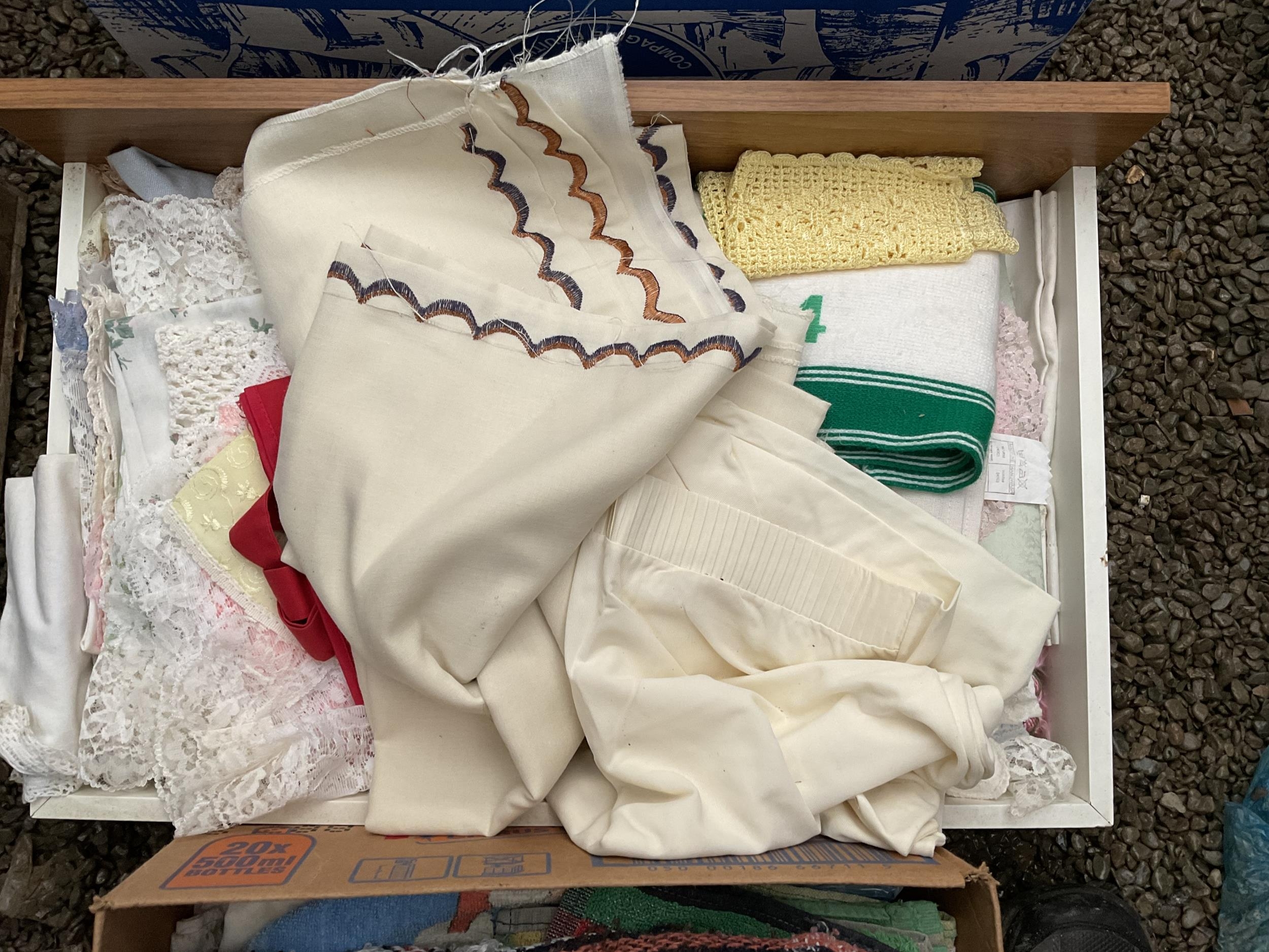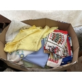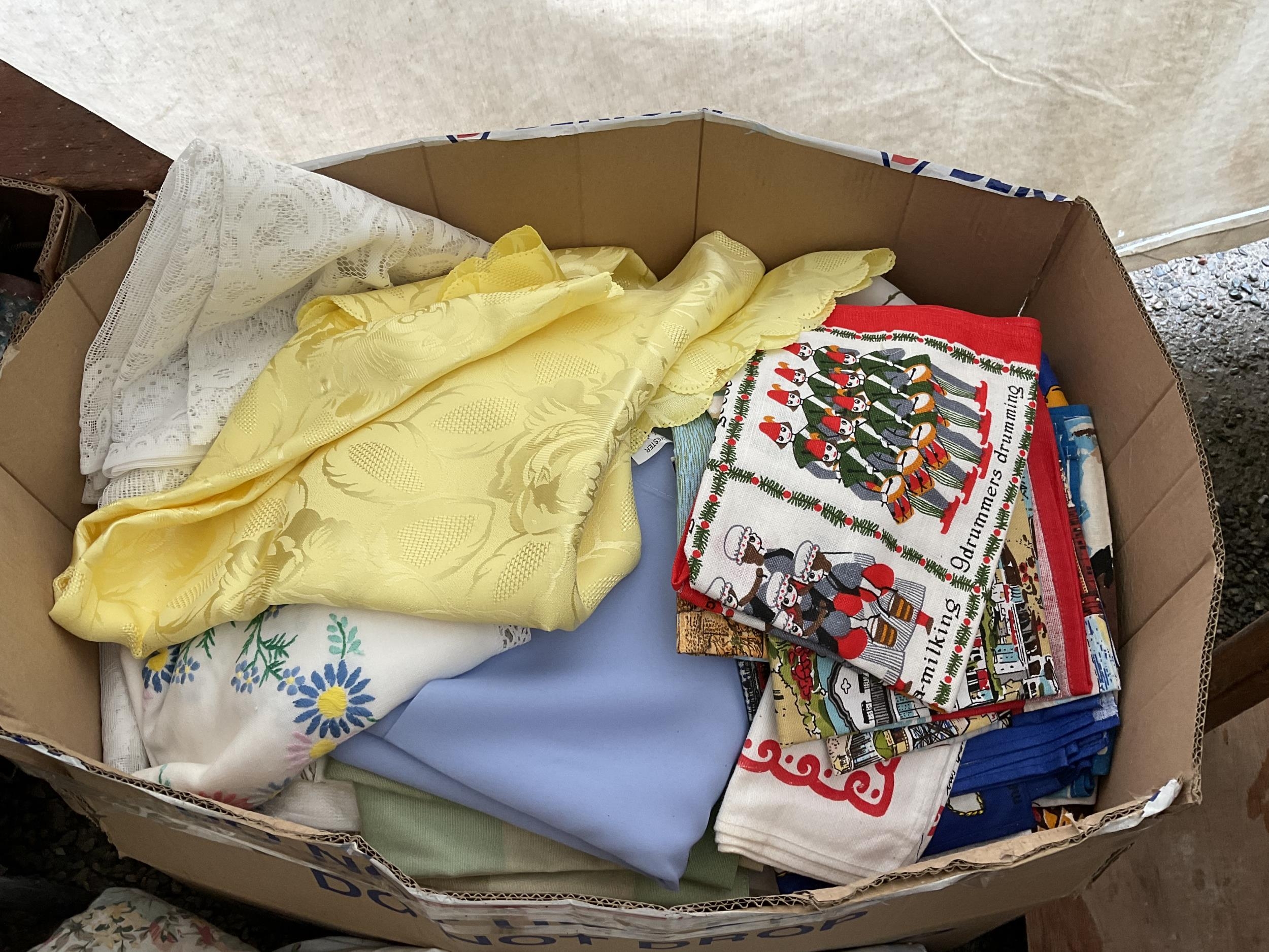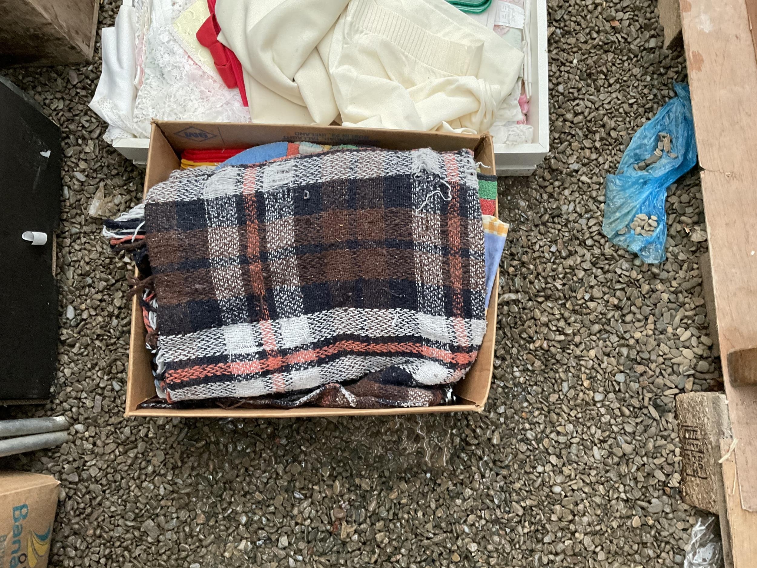 5 BOXES AND A LINEN BASKET OF BEDDING