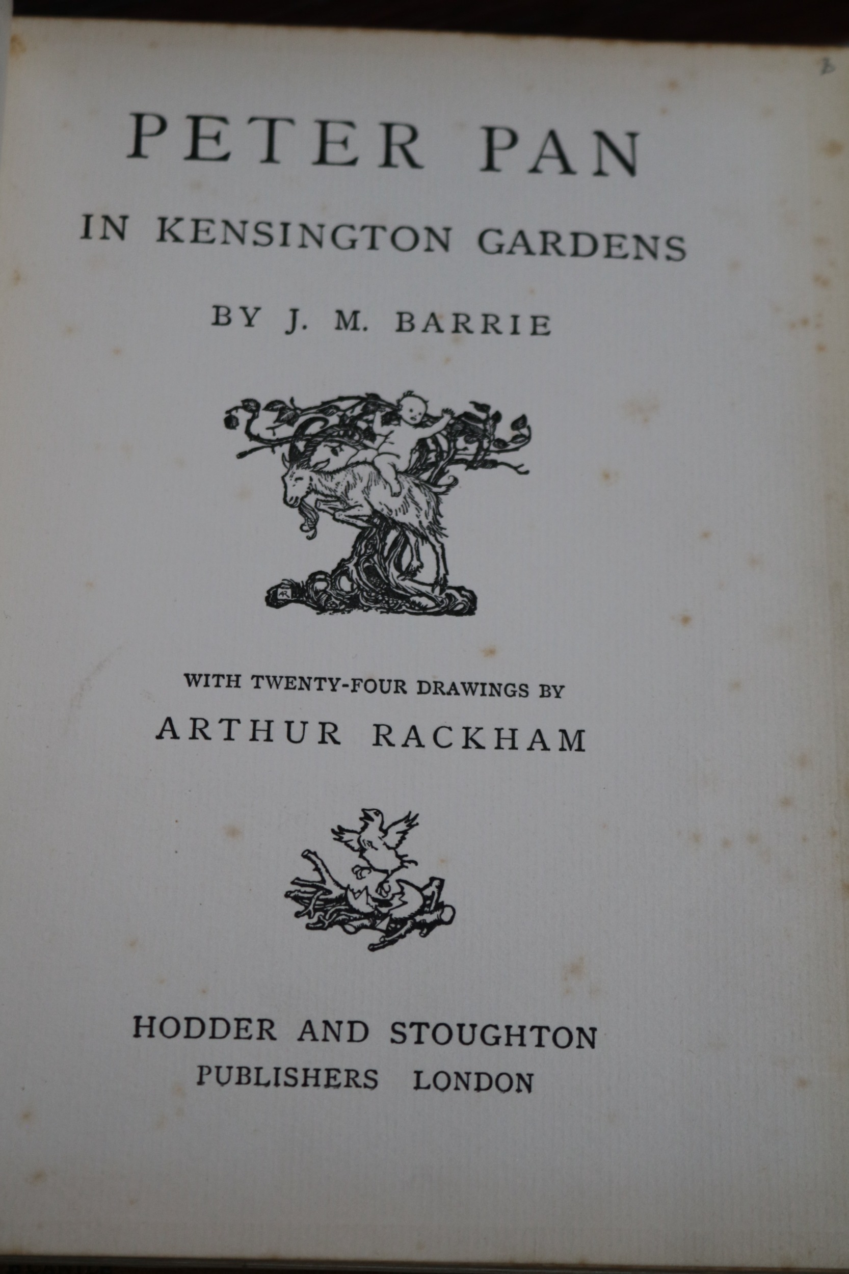 Peter Pan in Kensington Gardens by J M Barrie with Illustrations by Arthur Rackham published by Hodder and Stoughton, rebound and folio case