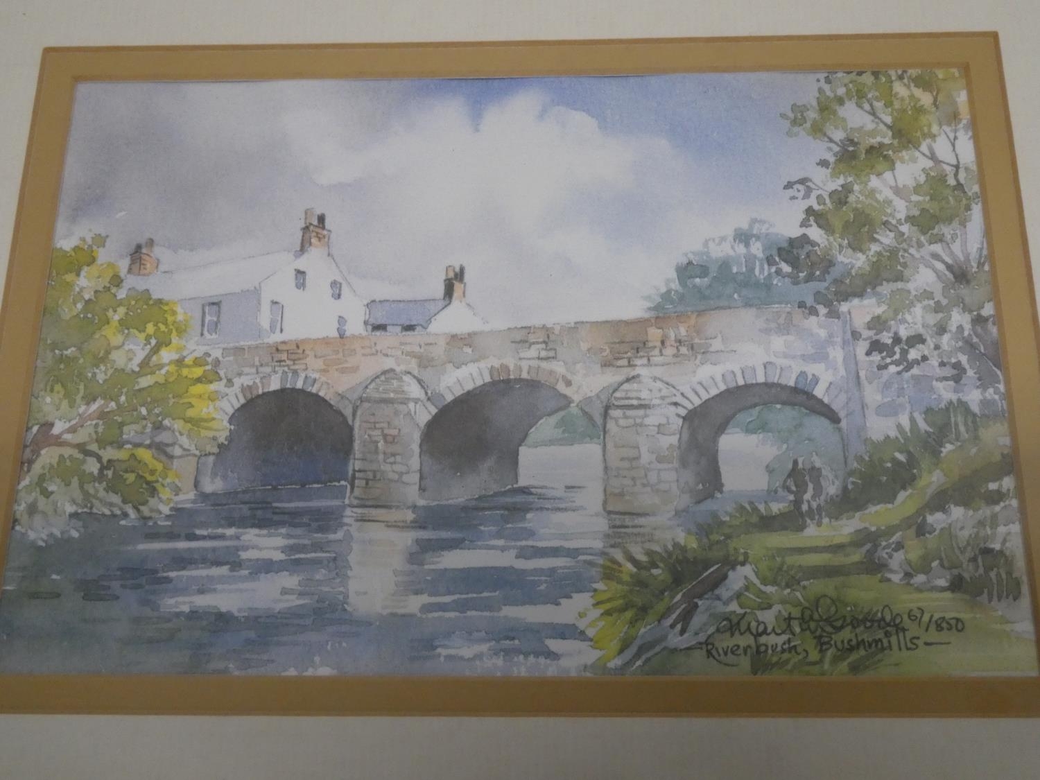 A set of four limited edition prints 'Slemish', 'Portstewart', 'The Viaduct, Randallstown', 'River bush, Bushmills'.