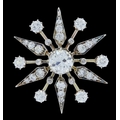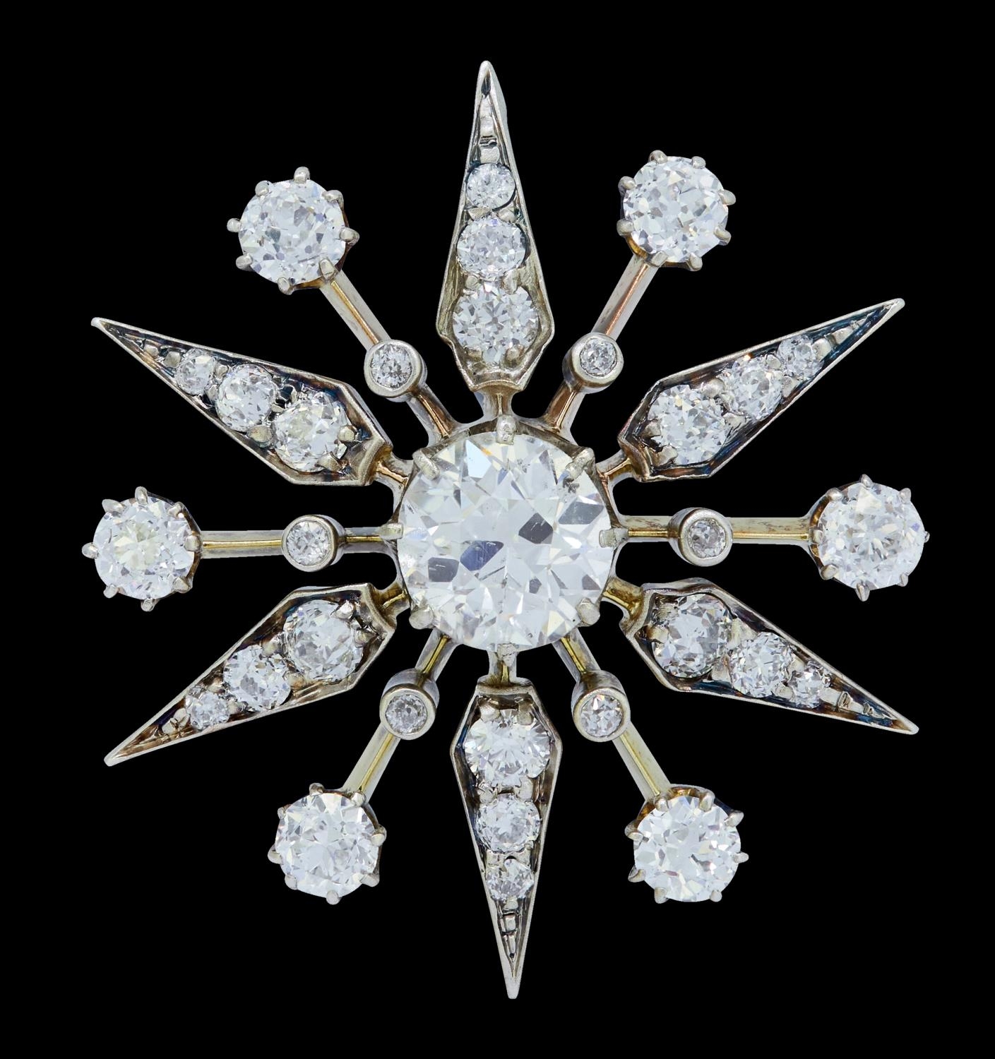 IMPORTANT DIAMOND STAR PENDANT, in precious yellow metal. Set to the center with a diamond of approx. 1.54 ct. flanked with diamonds on the sprays totalling approx. 2.10 ct. Total diamond weight approx. 3.64 ct. L 3.2 cm. With a box.