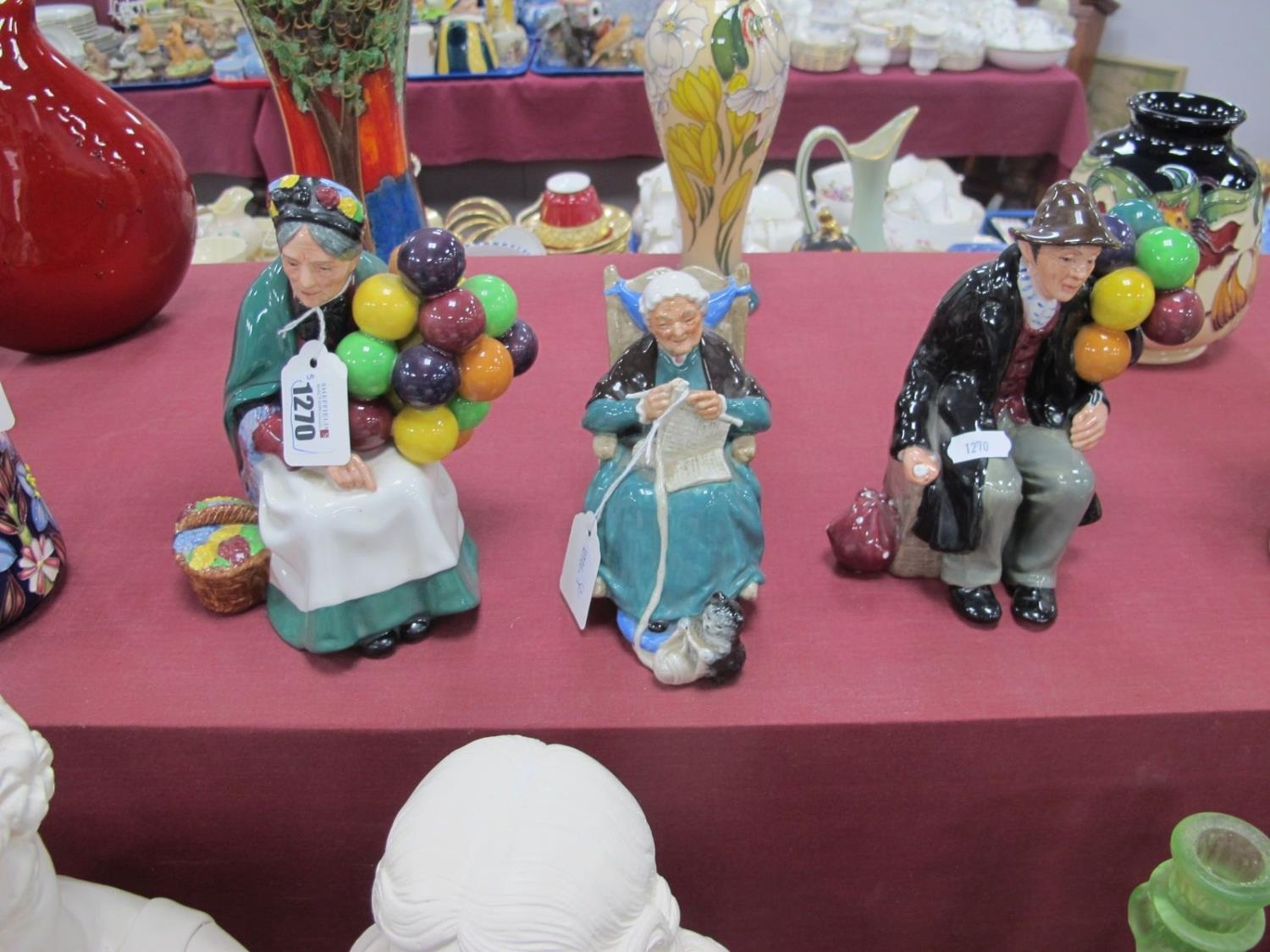 Three Royal Doulton Figurines - The Balloon Man HN1954, The Old Balloon Seller HN1315 and Twilight HN2256. (3)