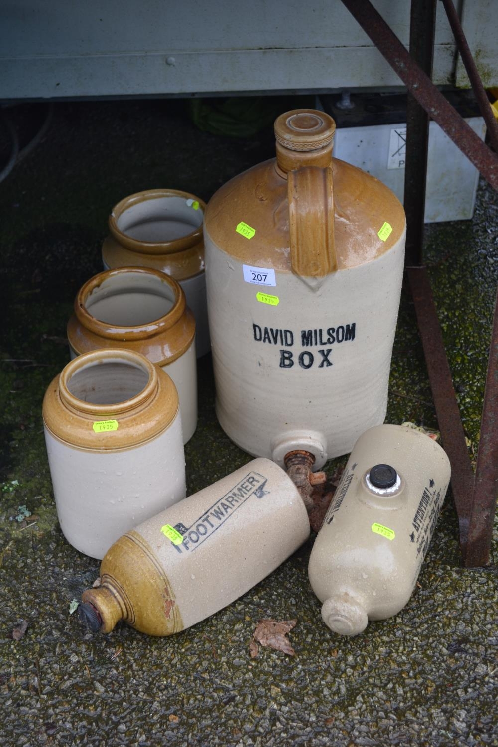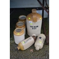 Selection of stoneware items inc. jars, flagons & hot water bottles