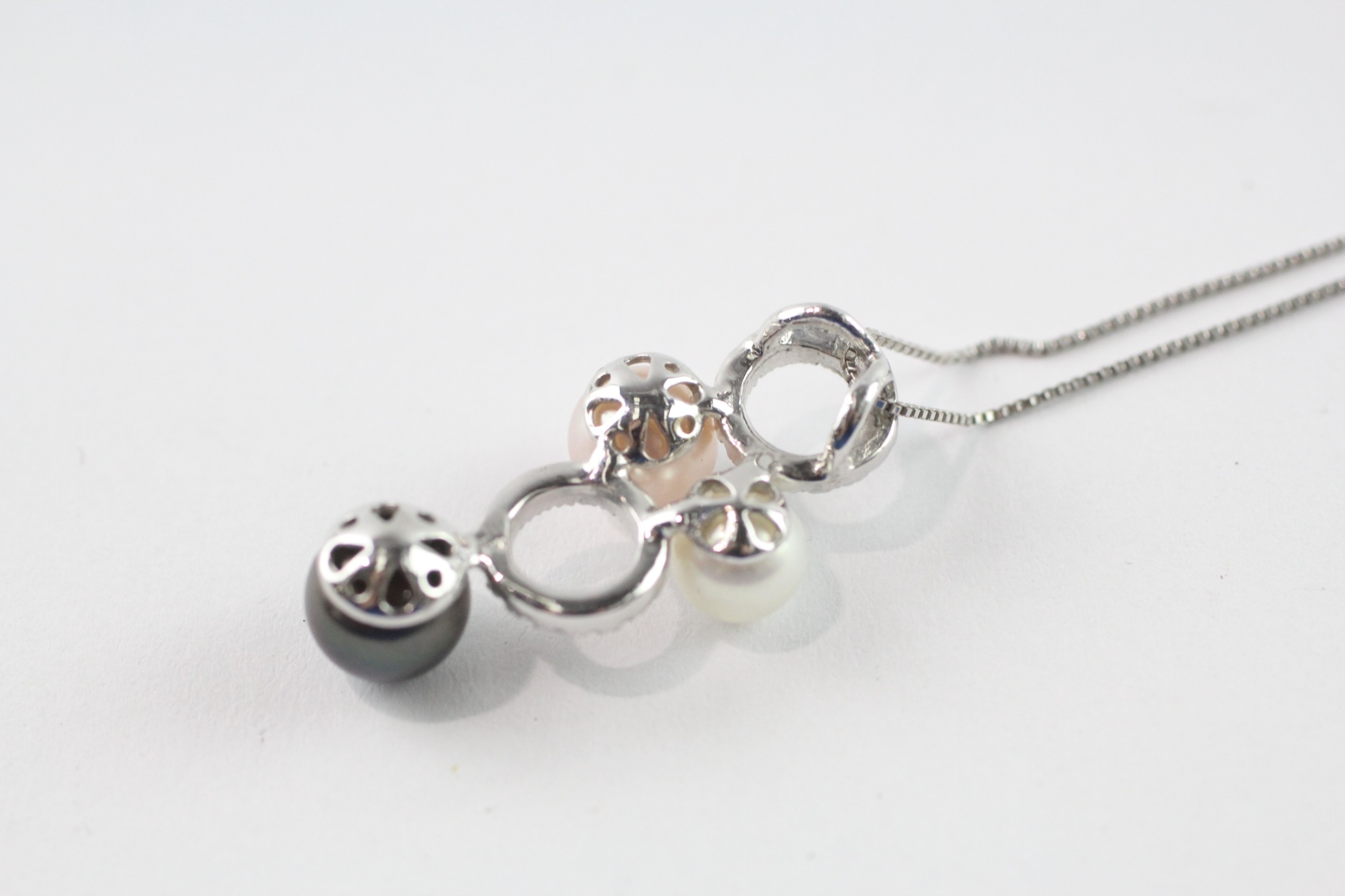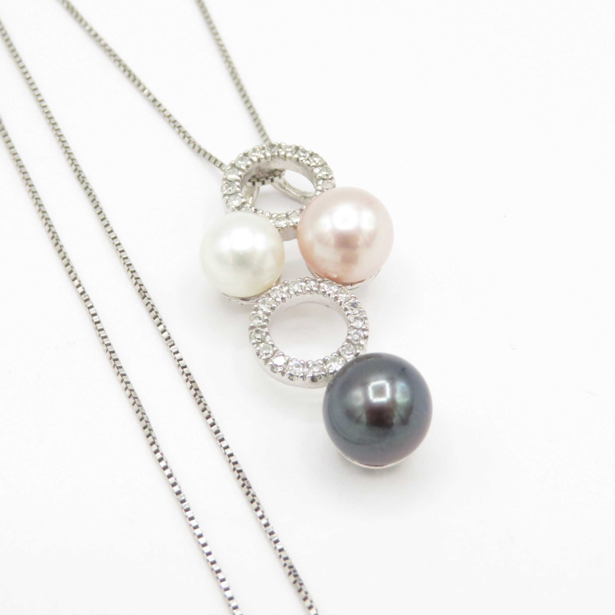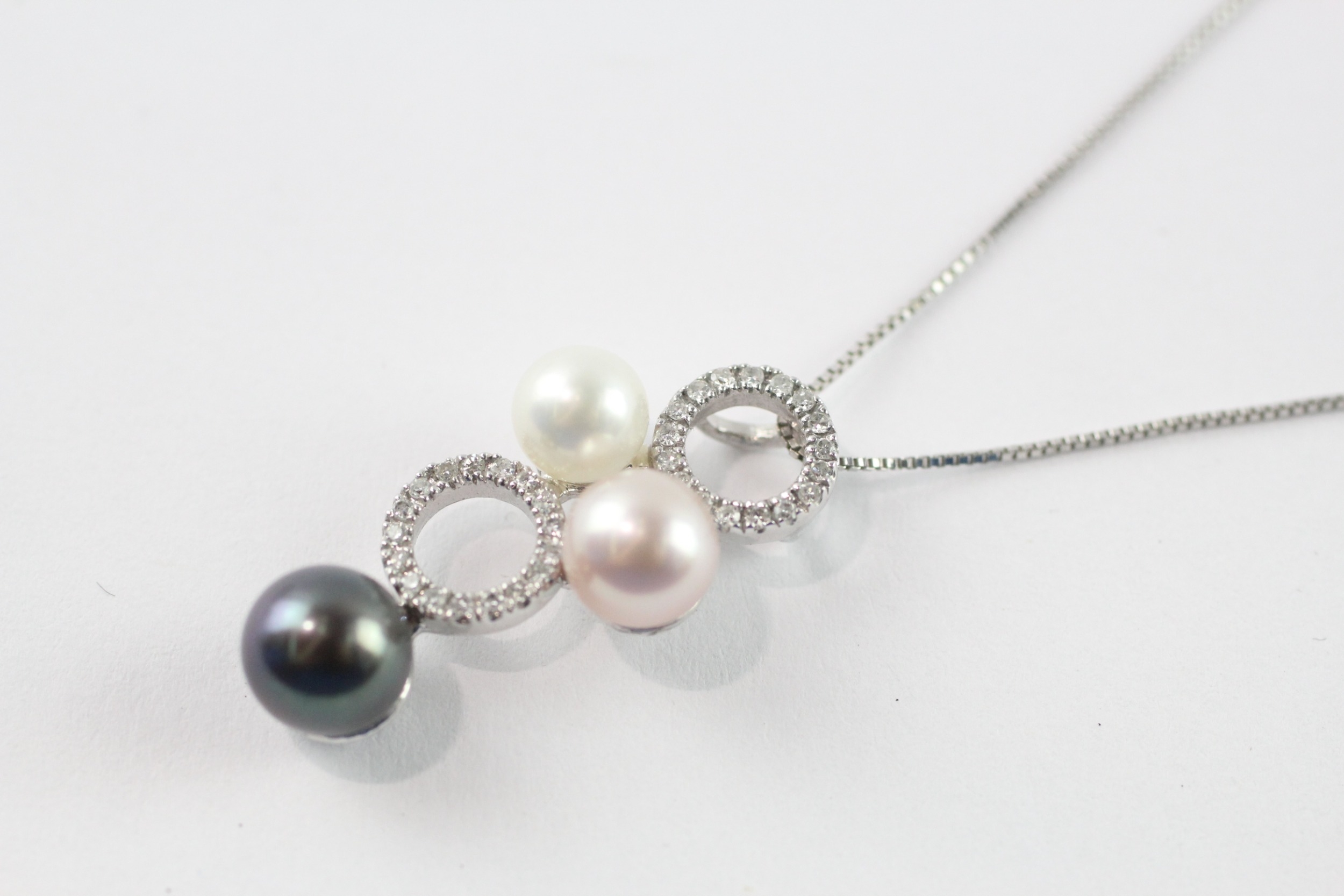 9ct white gold diamond cultured pearl pendant necklace (3.6g)