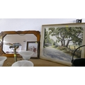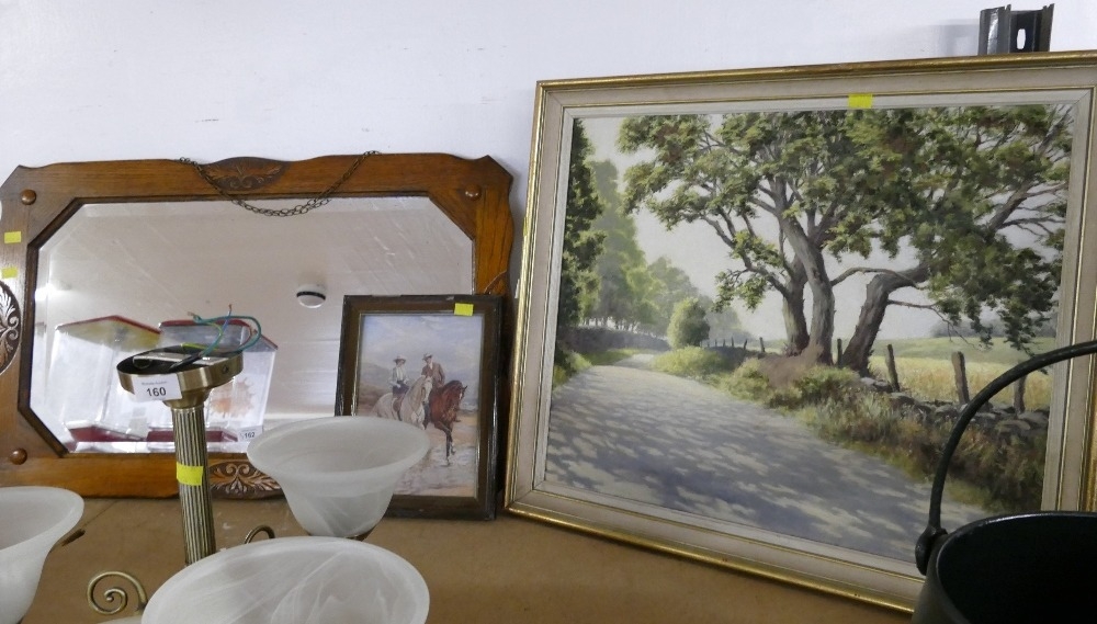 Mirror, indistinctly signed oil painting of a country lane and small horse picture