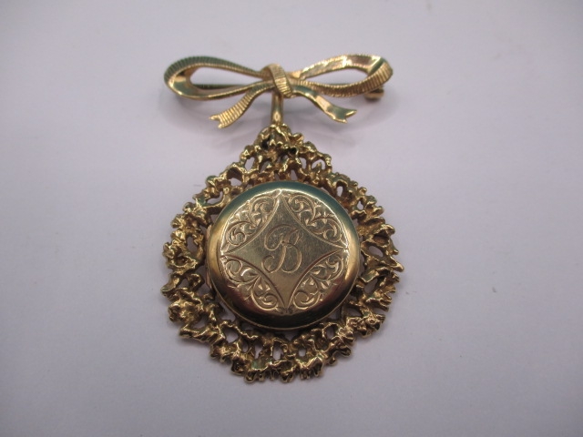 A vintage 9ct yellow gold locket brooch/pendant, in useable pre-owned condition, approx weight 13.3g