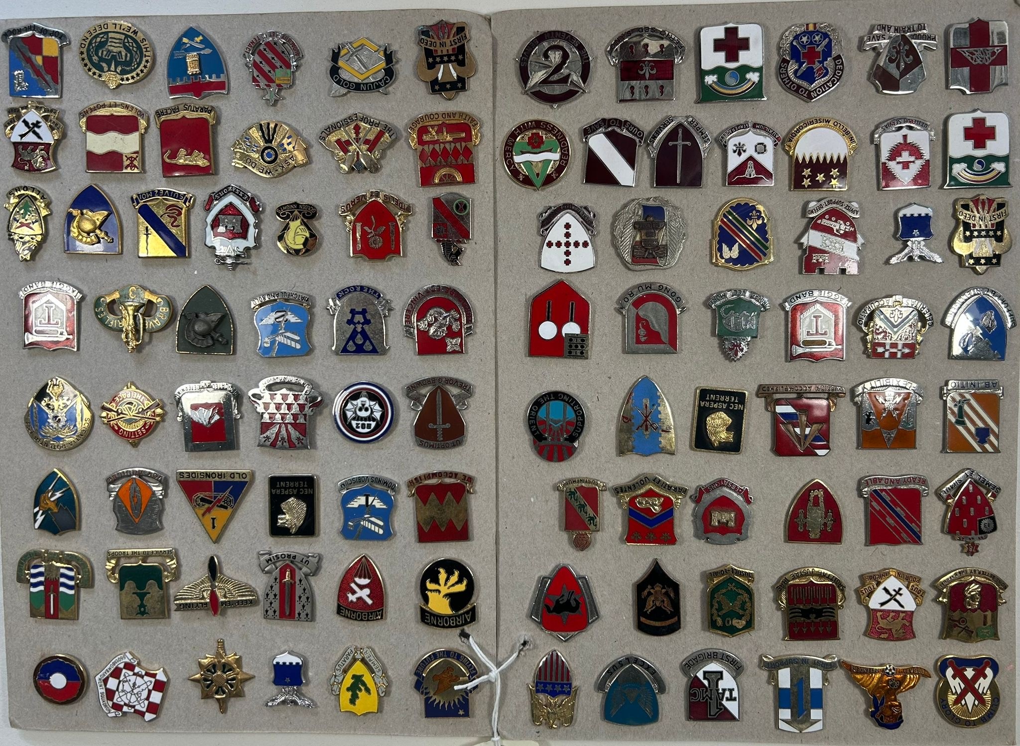 Approximately 100 US metal & enamel unit crests mounted ...