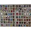 Approximately 100 US metal & enamel unit crests mounted on boards.