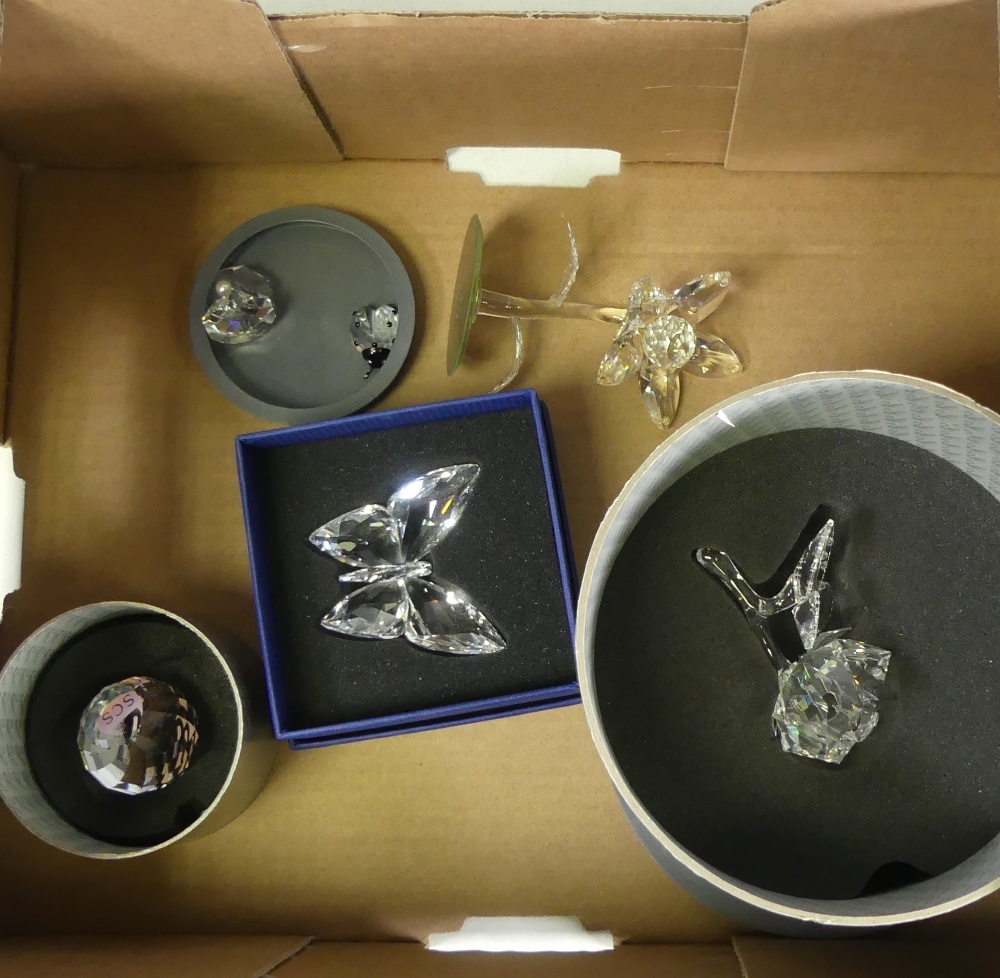 Swarovski Crystal butterfly, oyster with pearl type jewel, Lady bird, display dome, rose 7478 and other crystal flower(1tray)