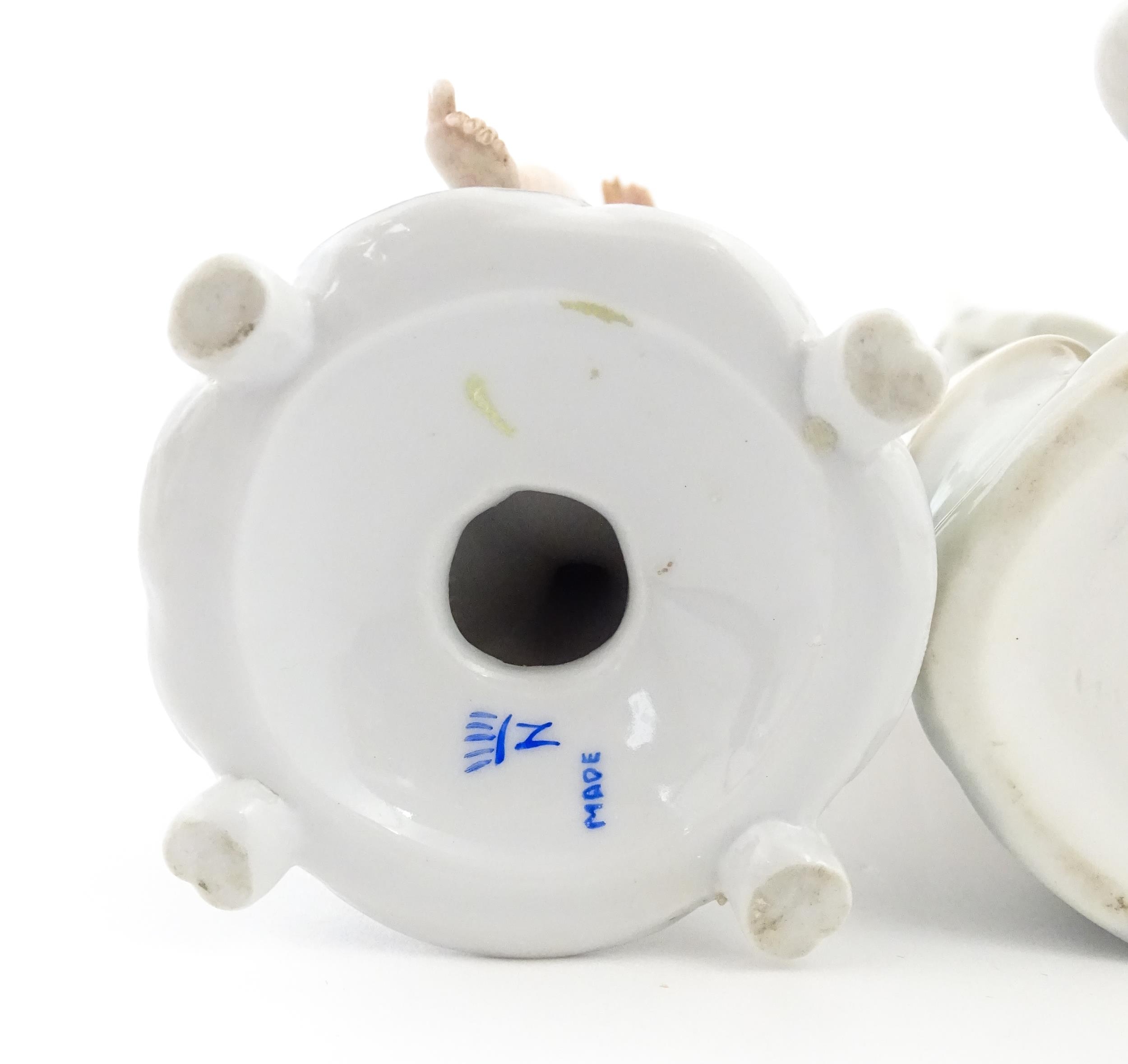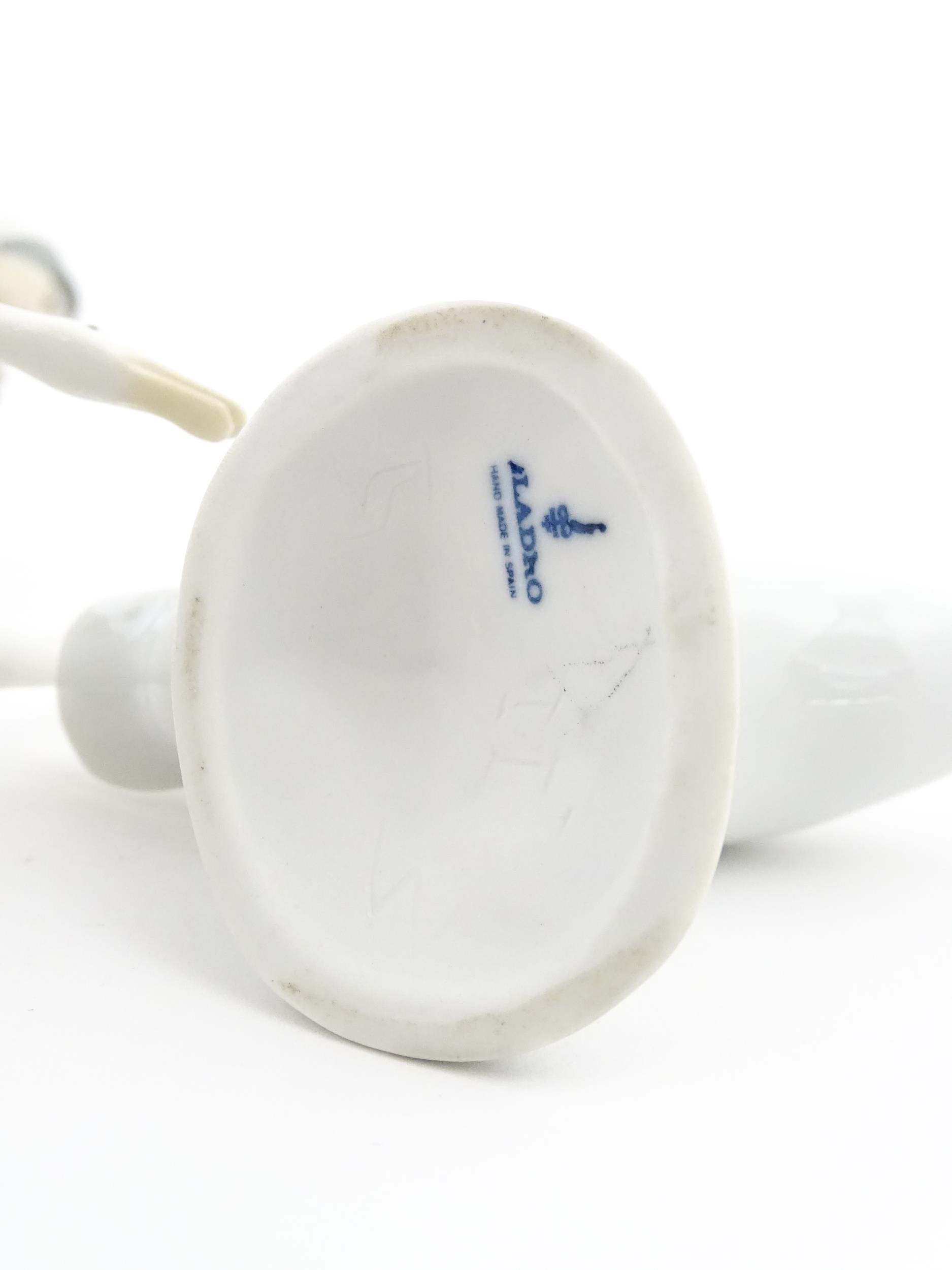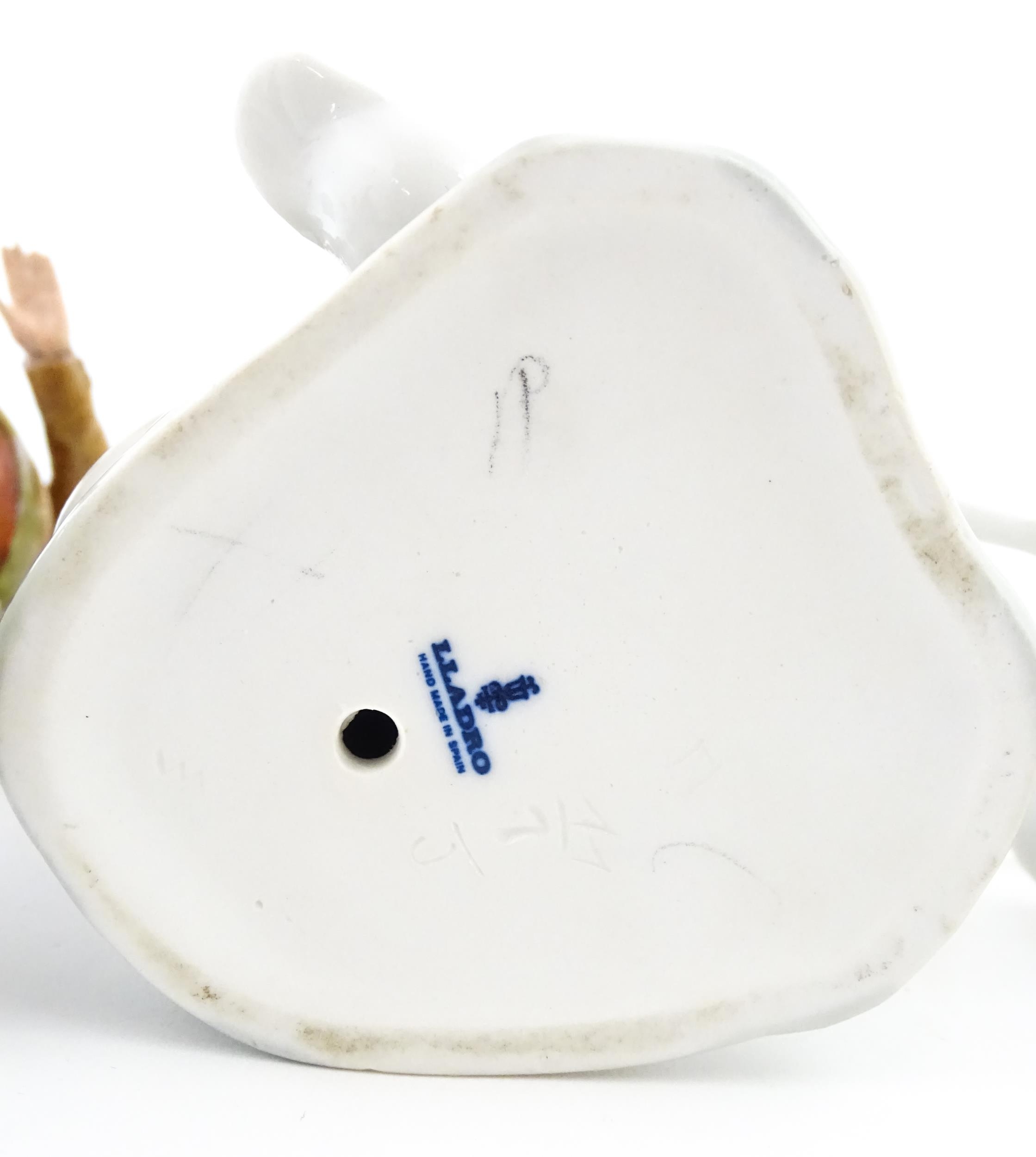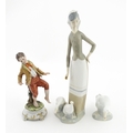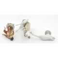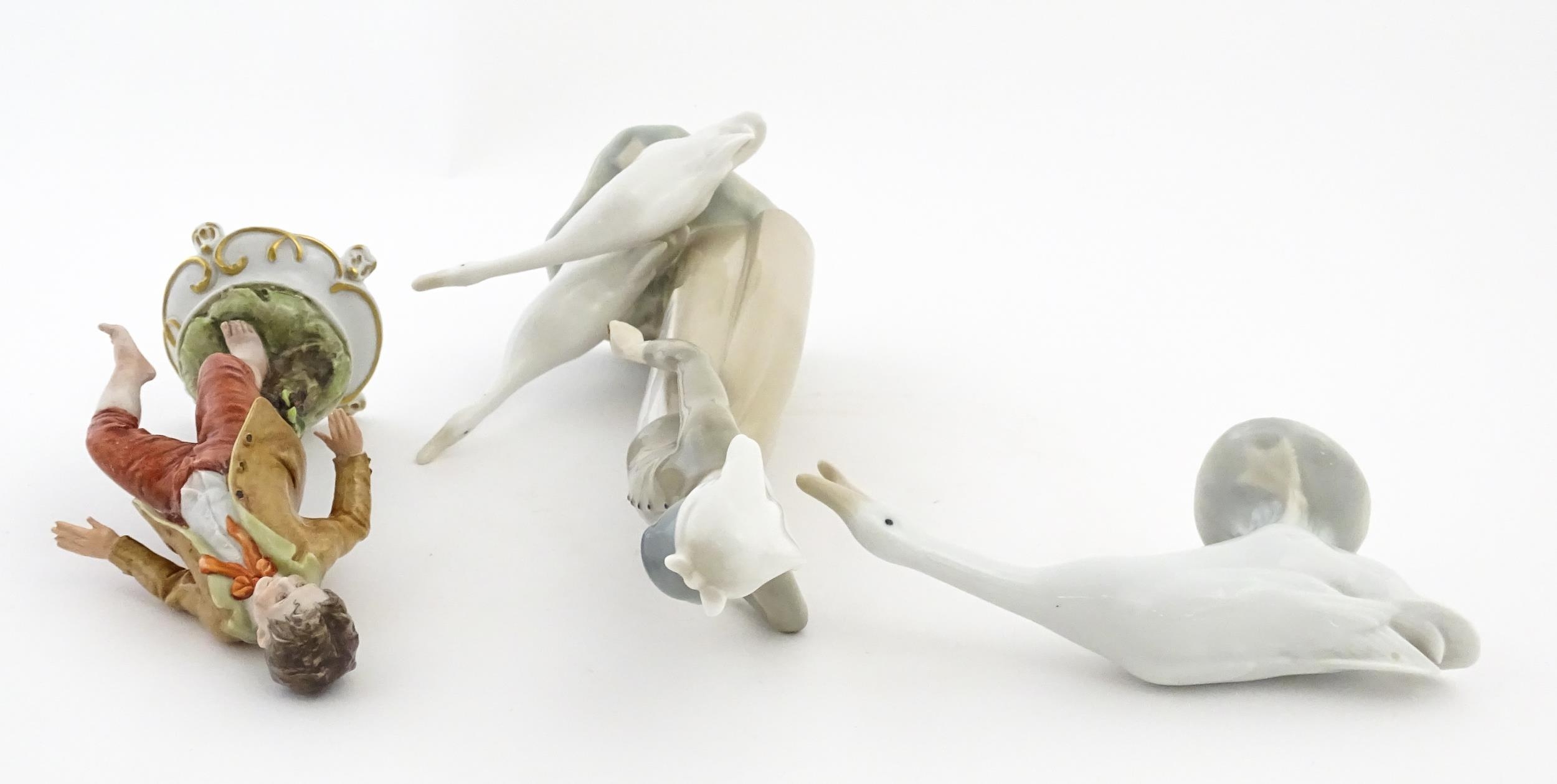 A Lladro figure Girl with Geese, and a Lladro model of a goose. Together with a Capodimonte model of a dancing boy. Largest approx. 10 1/2" high (3)