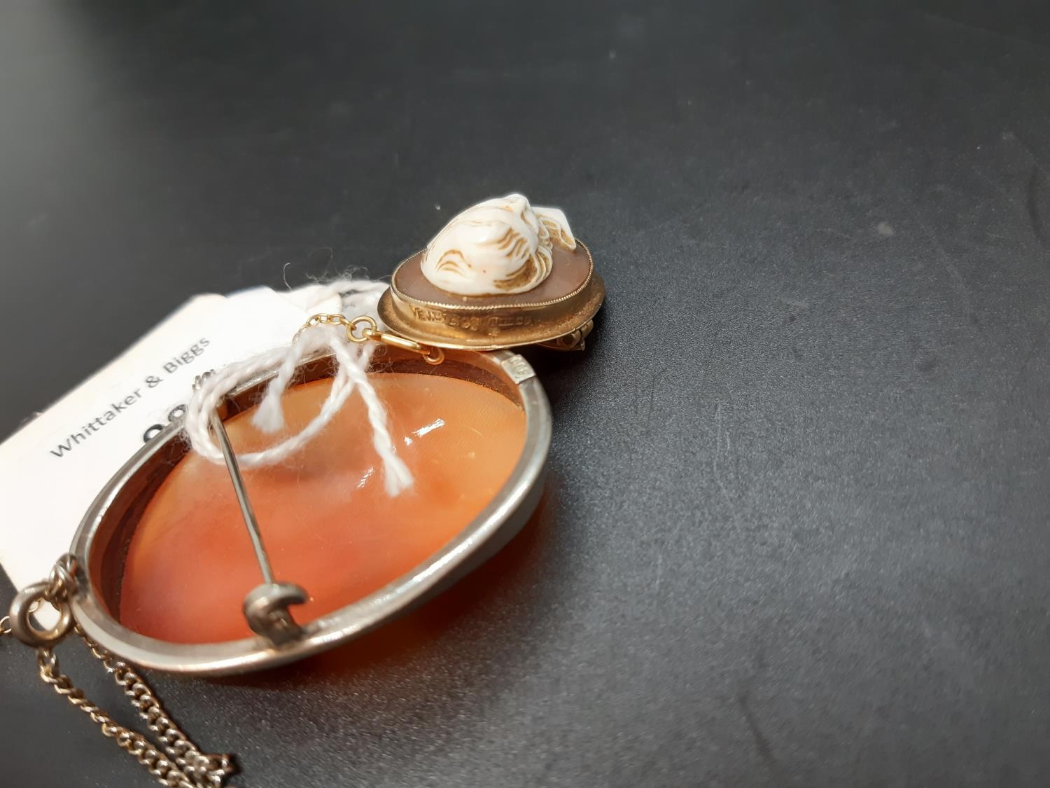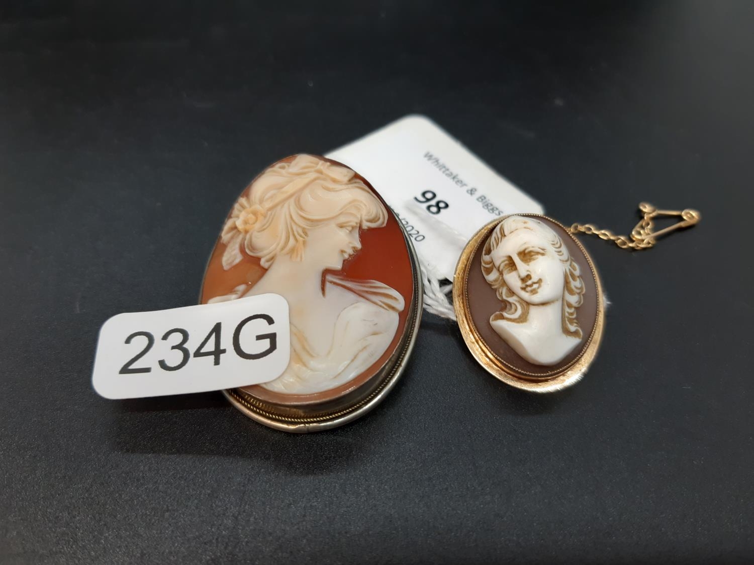 Two Victorian Ladies cameo brooches, one with continental 800 grade silver surround, the other with hallmarked 9ct gold surround