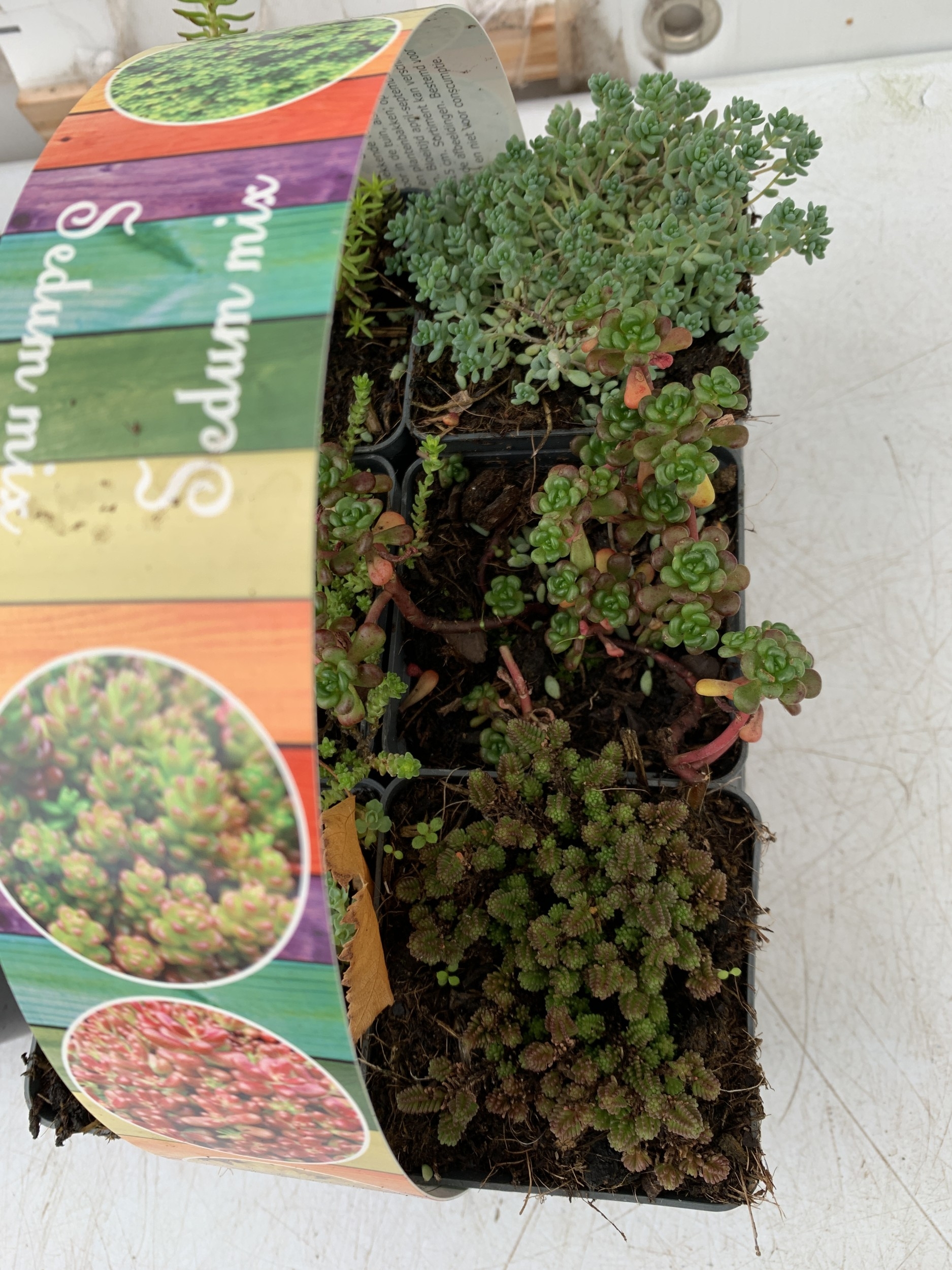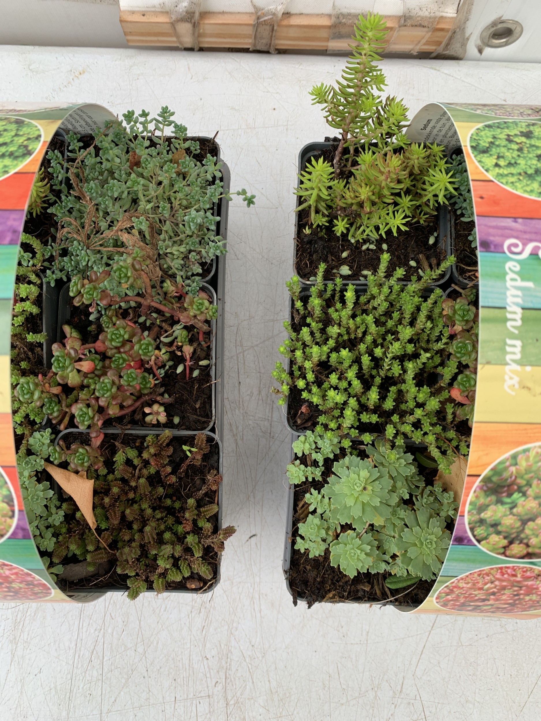 TWELVE MIXED SEDUMS IN TWO CARRY PACKS. TO BE SOLD FOR THE TWELVE