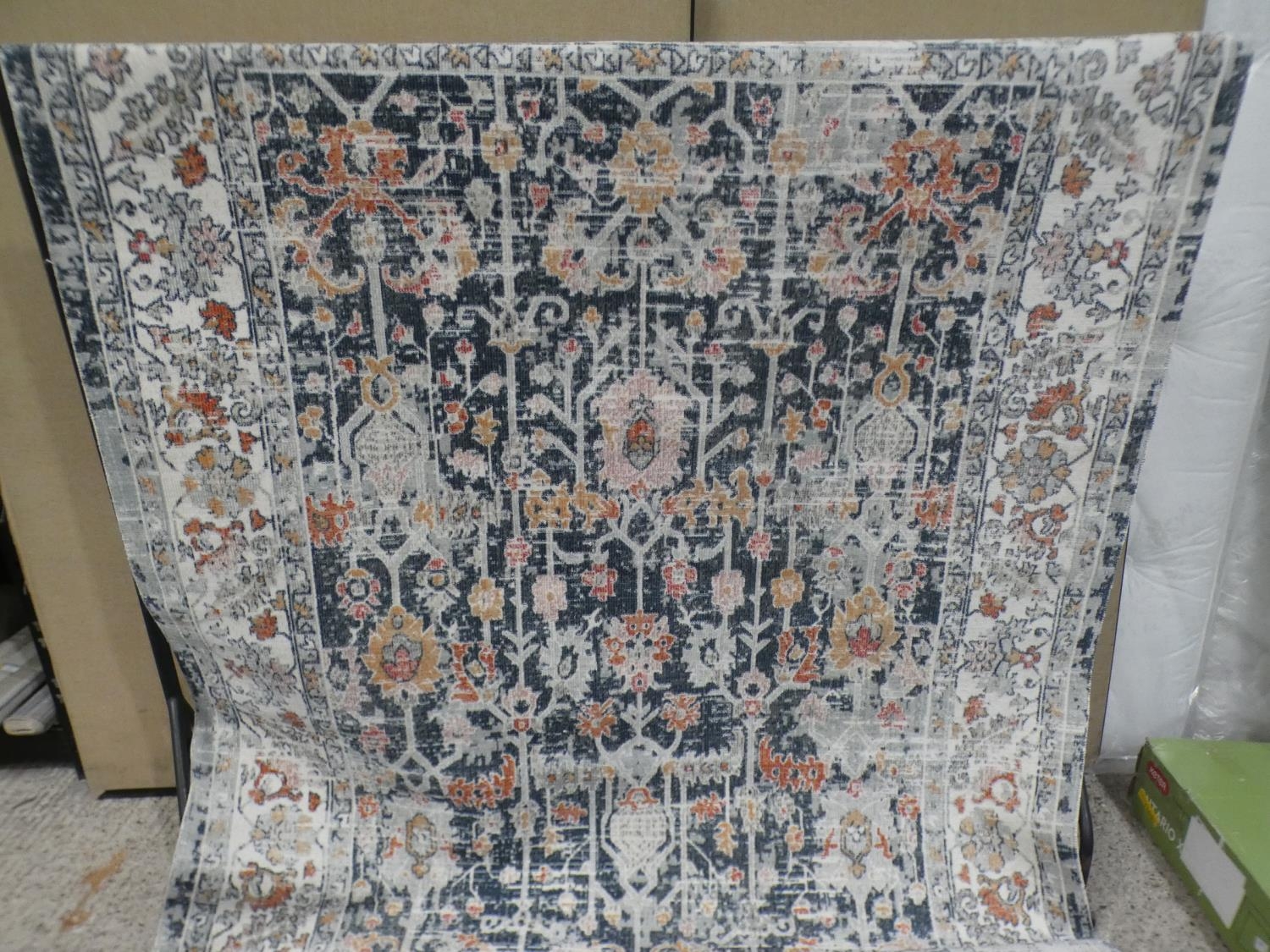 A navy zero pile distressed rug (190cm x 280cm) * This lot i...