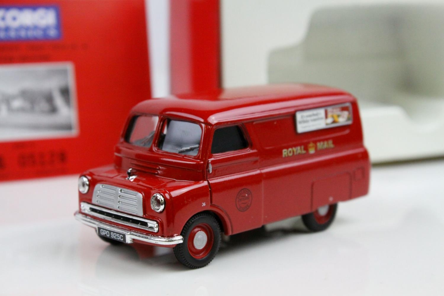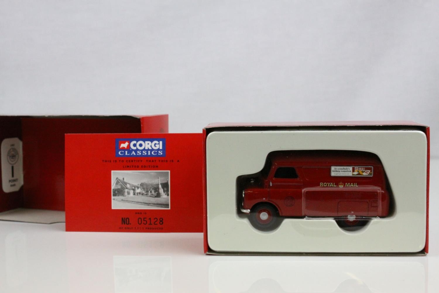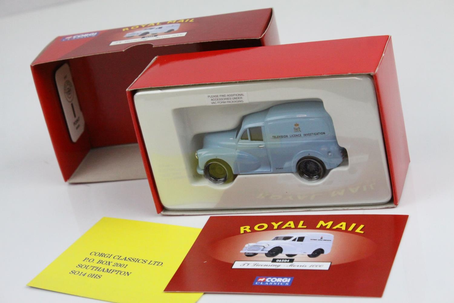 Nine boxed Corgi diecast models to include Royal Mail x 5 (06504, 06001, 08002, 05605 & 05901), Fire Support Vehicles 07106, Pickfords 20501, Whiskey Collection 21303 and Guy Invincible 29101, all vg and with certificates