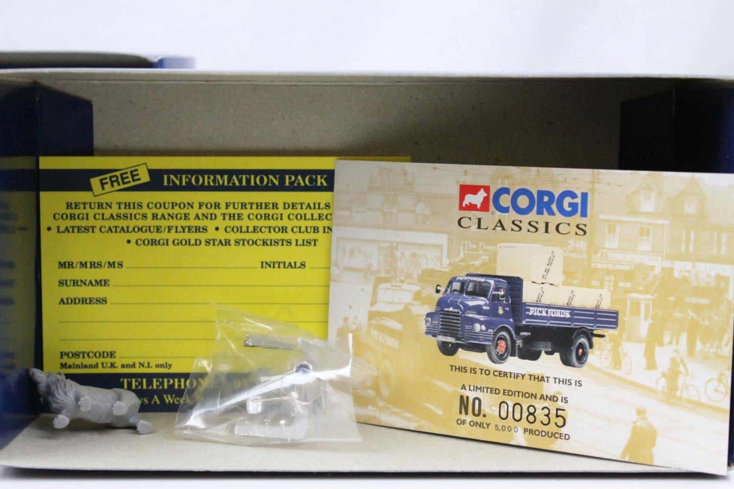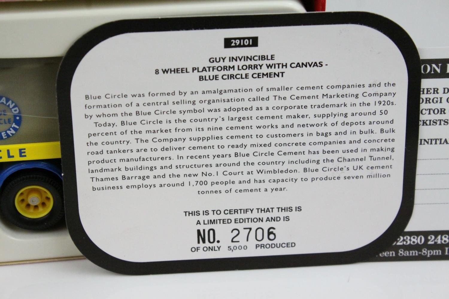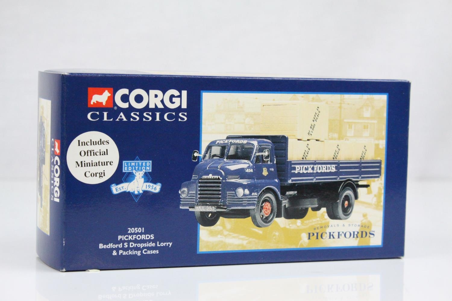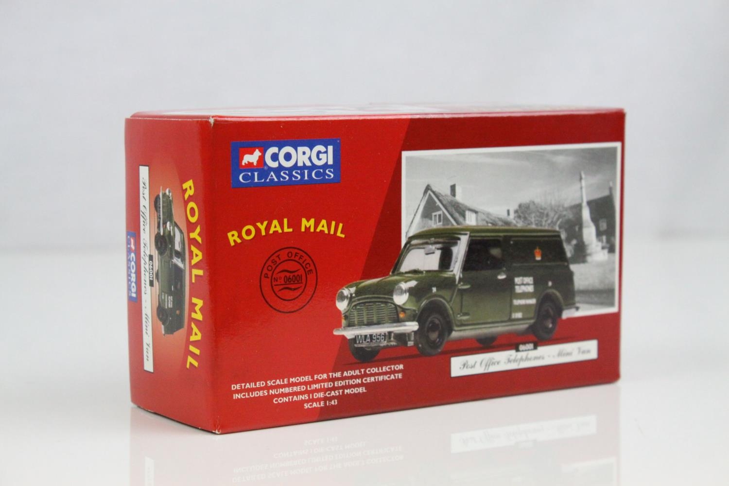 Nine boxed Corgi diecast models to include Royal Mail x 5 (06504, 06001, 08002, 05605 & 05901), Fire Support Vehicles 07106, Pickfords 20501, Whiskey Collection 21303 and Guy Invincible 29101, all vg and with certificates