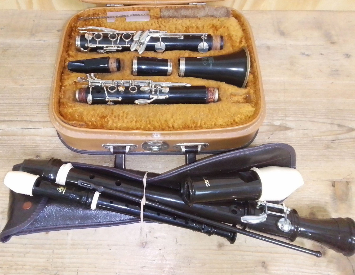 A Lafleur clarinet in case together with two recorders.