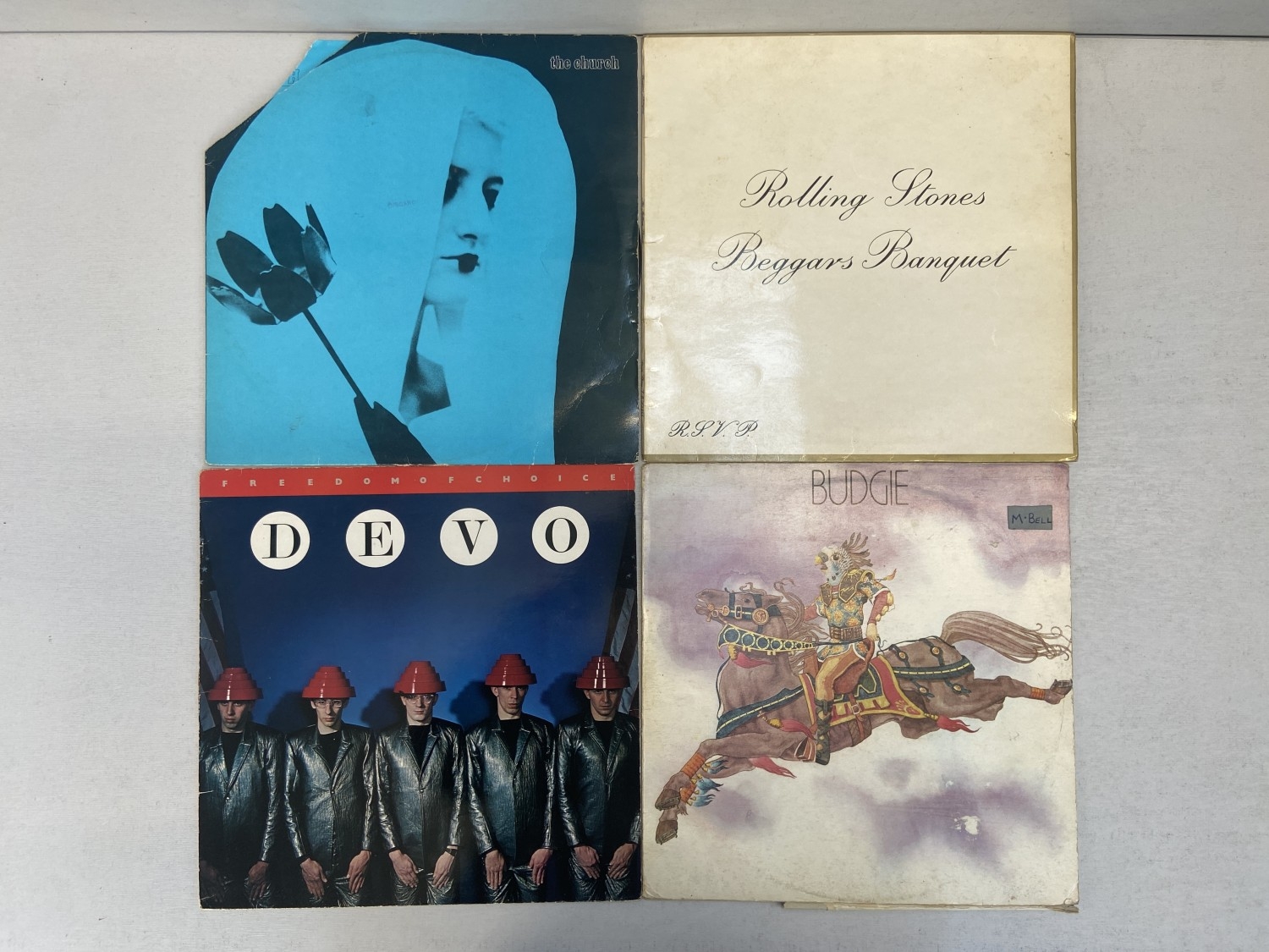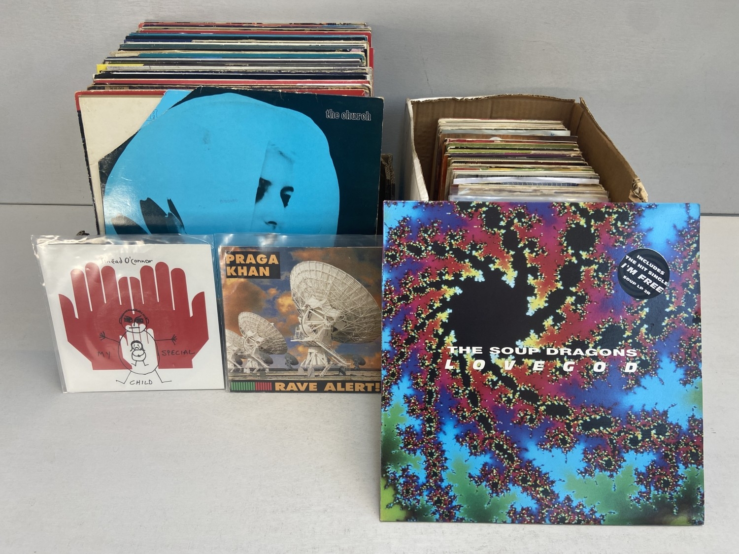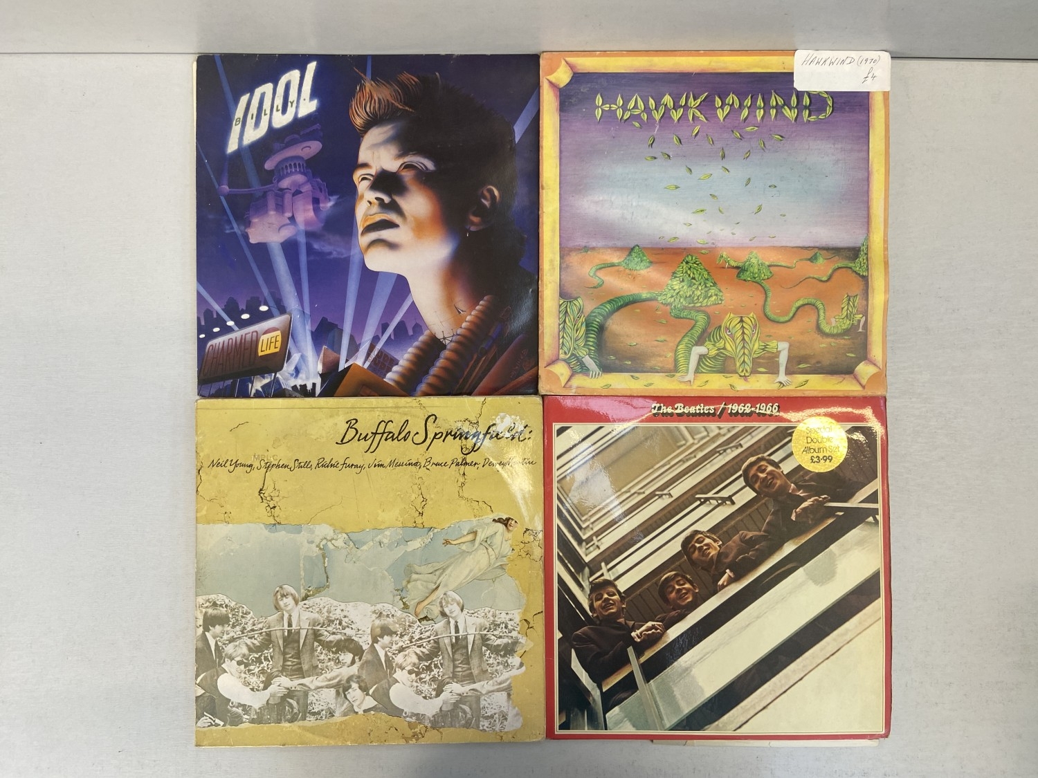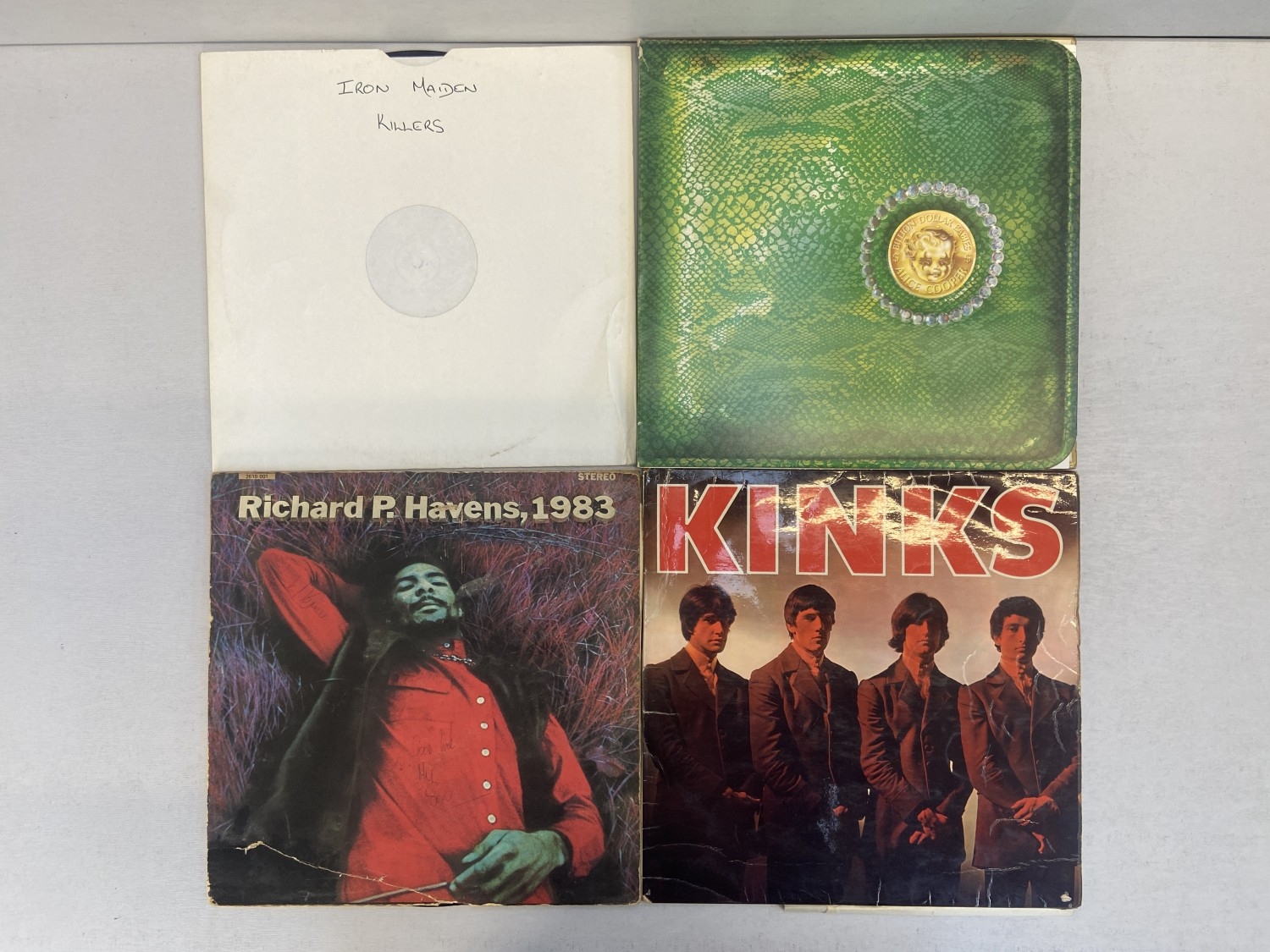 Two boxes containing approx. one hundred and sixty vinyl records to include Richard P. Havens, The Kinks, The Rolling Stones, Budgie, Alice Cooper, The Beatles, Hawkwind, The Soup Dragons, Iron Maiden, Devo, The Church etc.