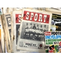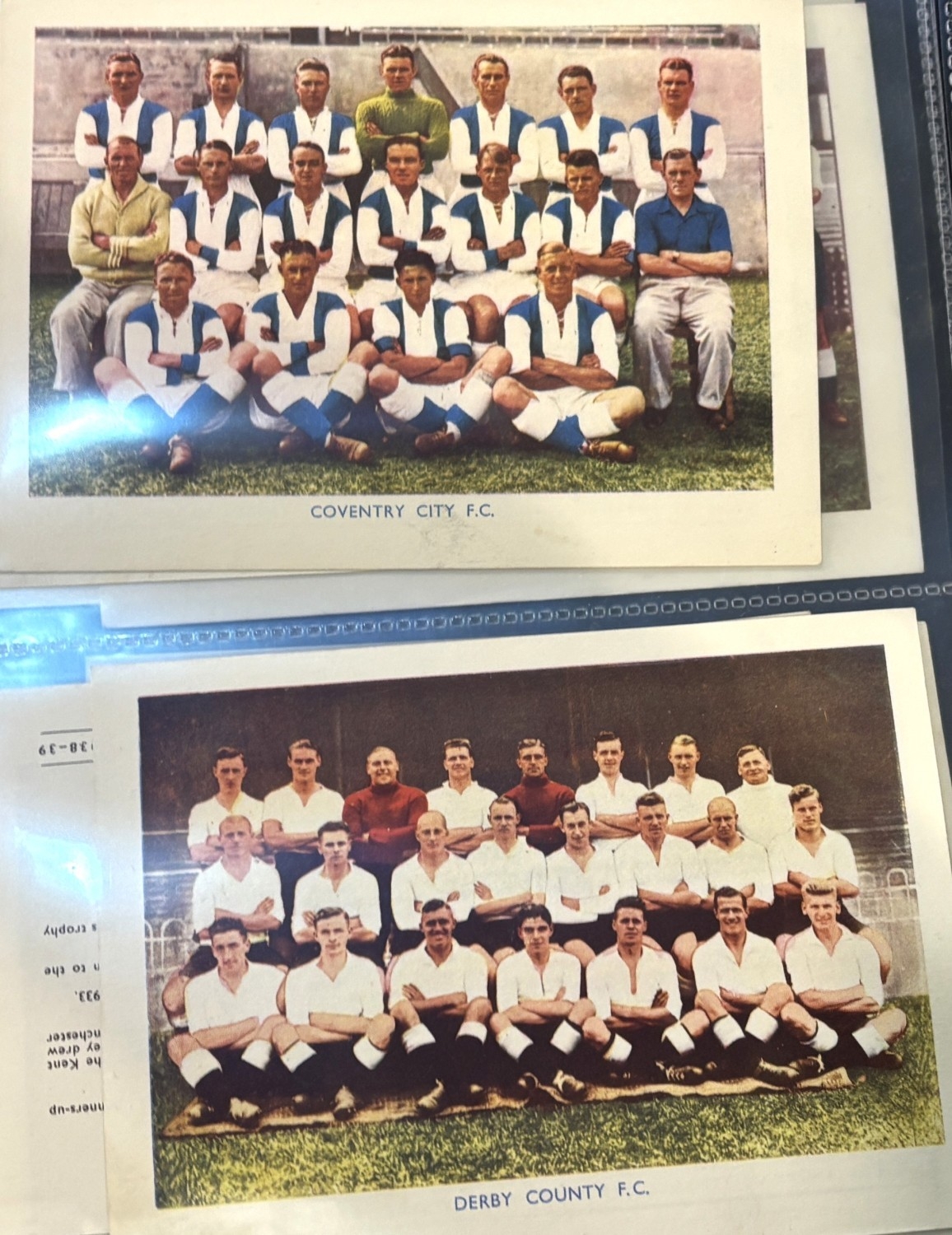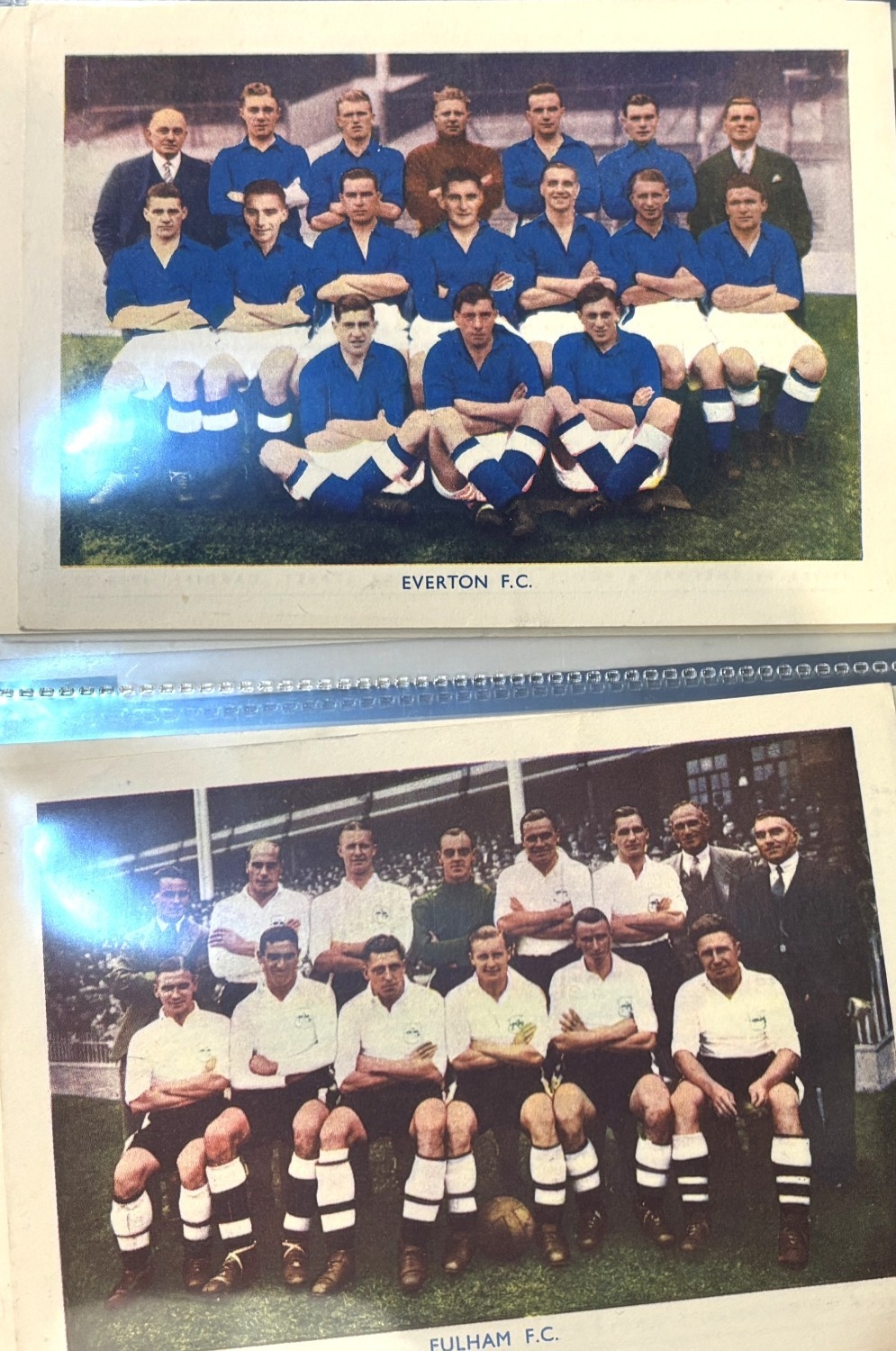 Collection of Sports memorabilia 1938 Shermans Pools Famous Teams cards full set (37/37); 1971/72 Football Soccer Stamp Album (by the Sun) feat. George Best on cover, contents inc. football stamps for all clubs, album complete plus other football and cricket collectables.