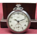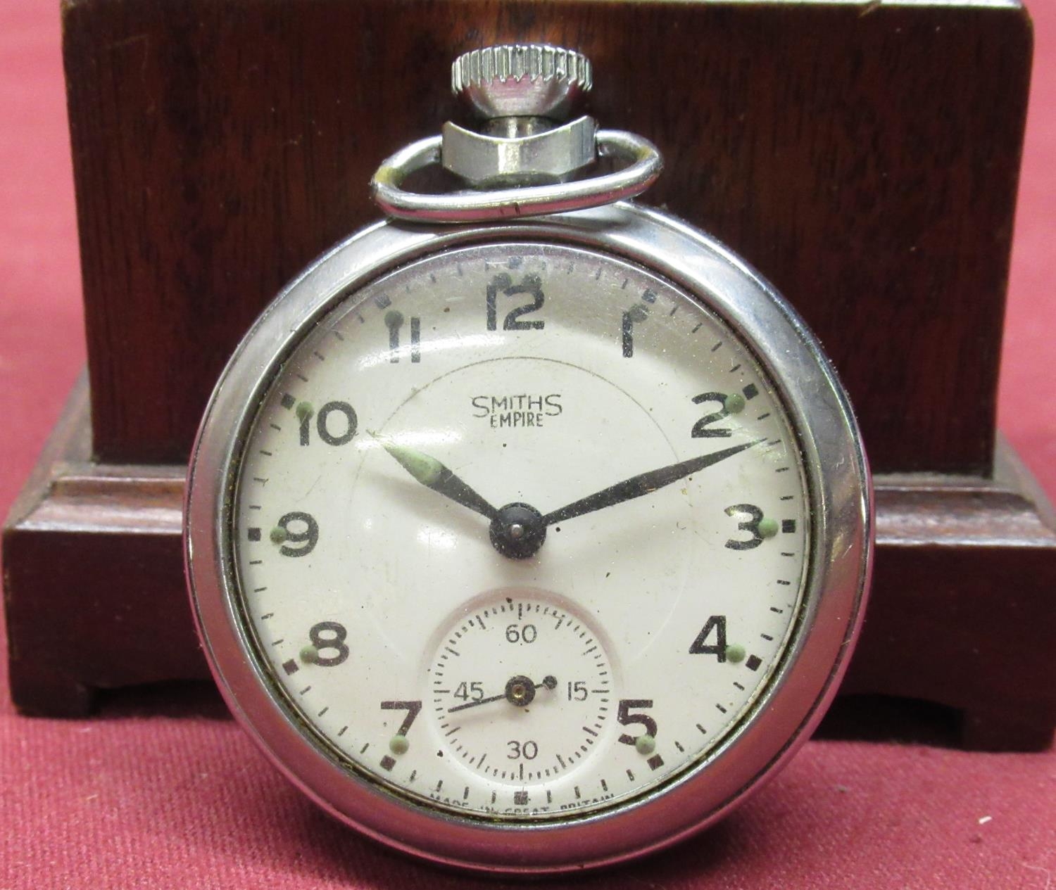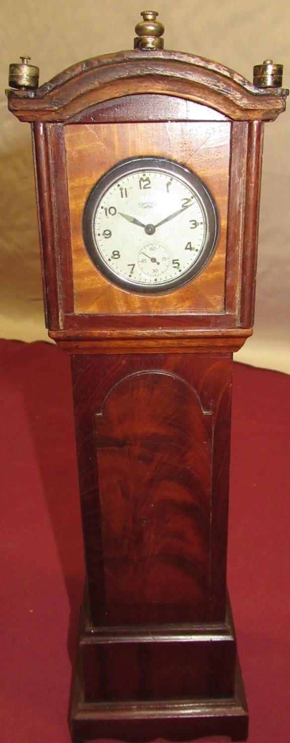 Early C20th pocket watch stand in the form of a Geo. III mahogany long case clock, complete with Smith's Empire pocket watch with pin pallet movement H32cm