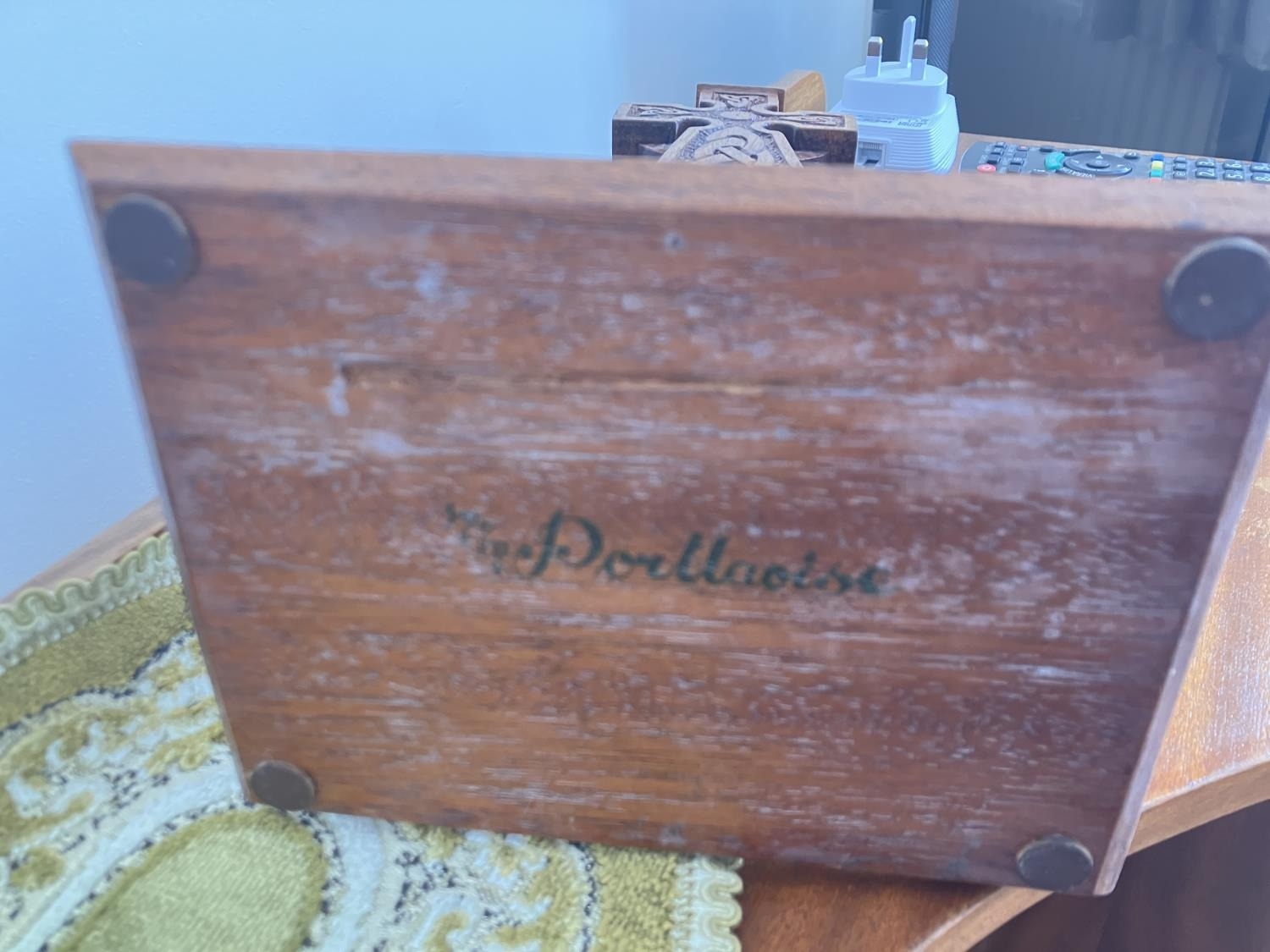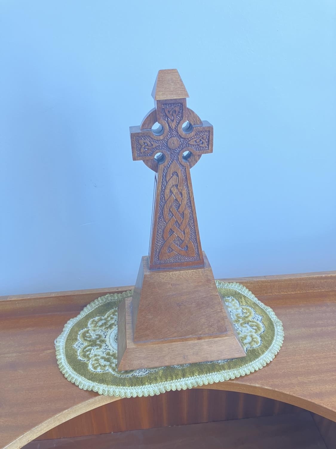 Prison Art - Carved Celtic Cross, the base stamped Portlaoise. H. 37cm.