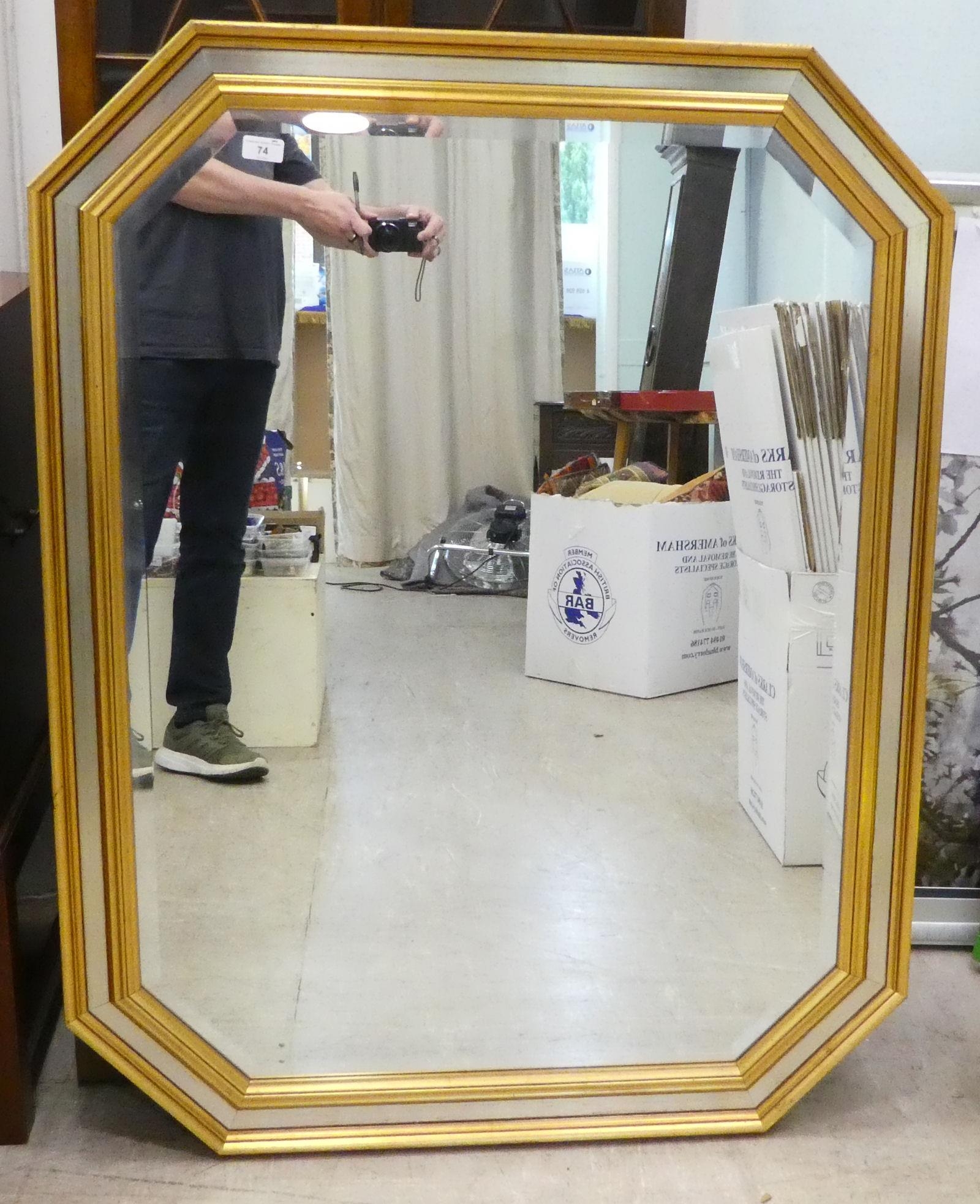 A modern mirror, the bevelled plate set in an octagonal gilt frame 36" x 46"