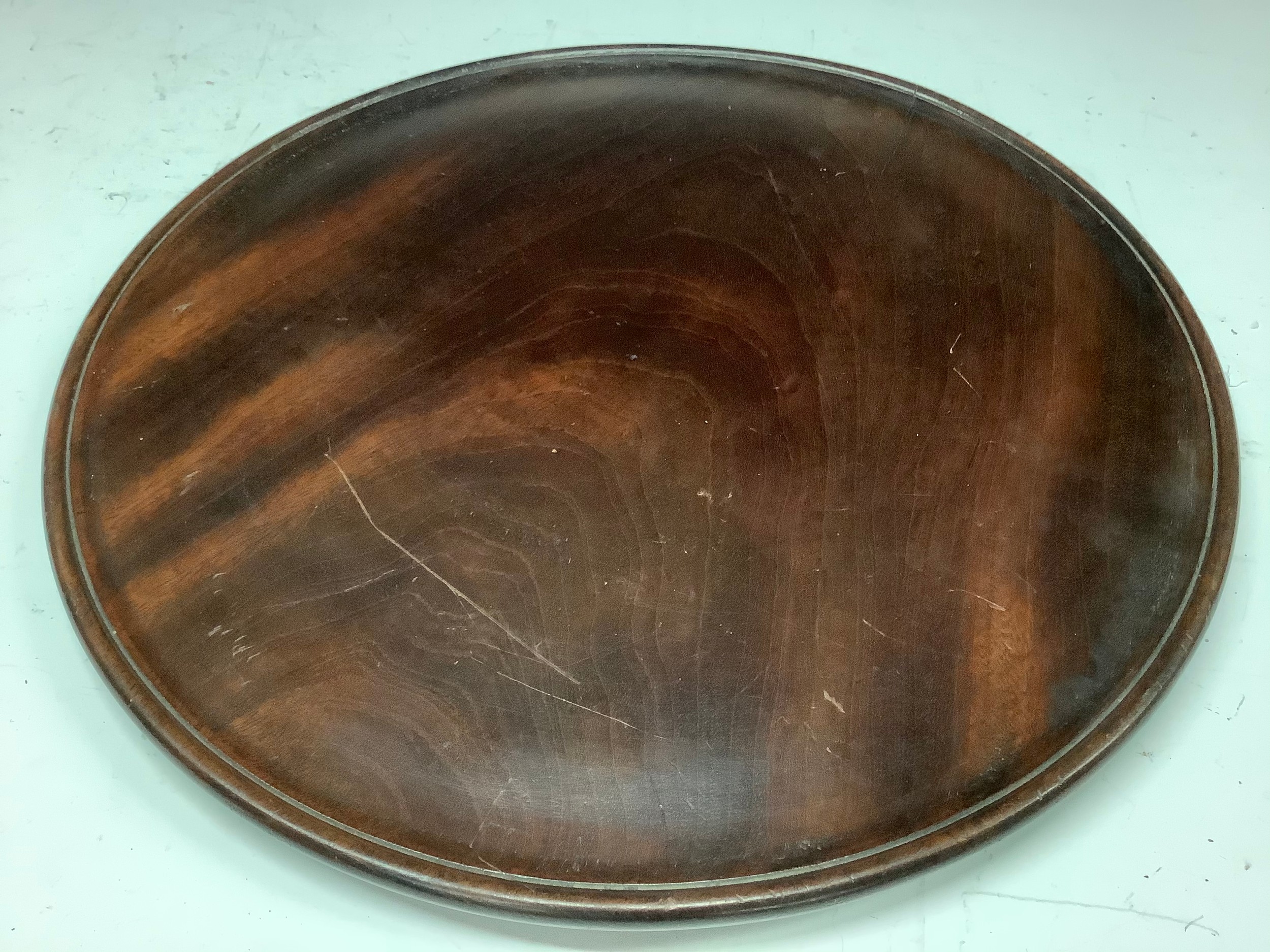 A 19th century mahogany circular tray or waiter, 30cm diam