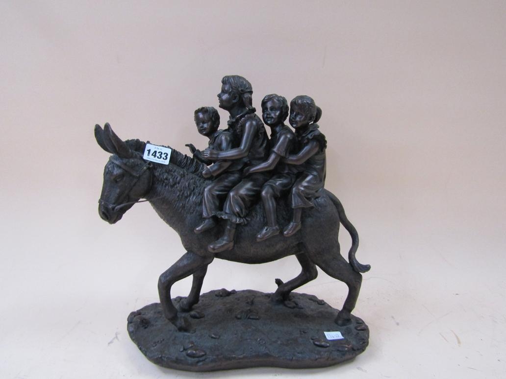 LARGED BRONZED FIGURE OF CHILDREN ON A DONKEY