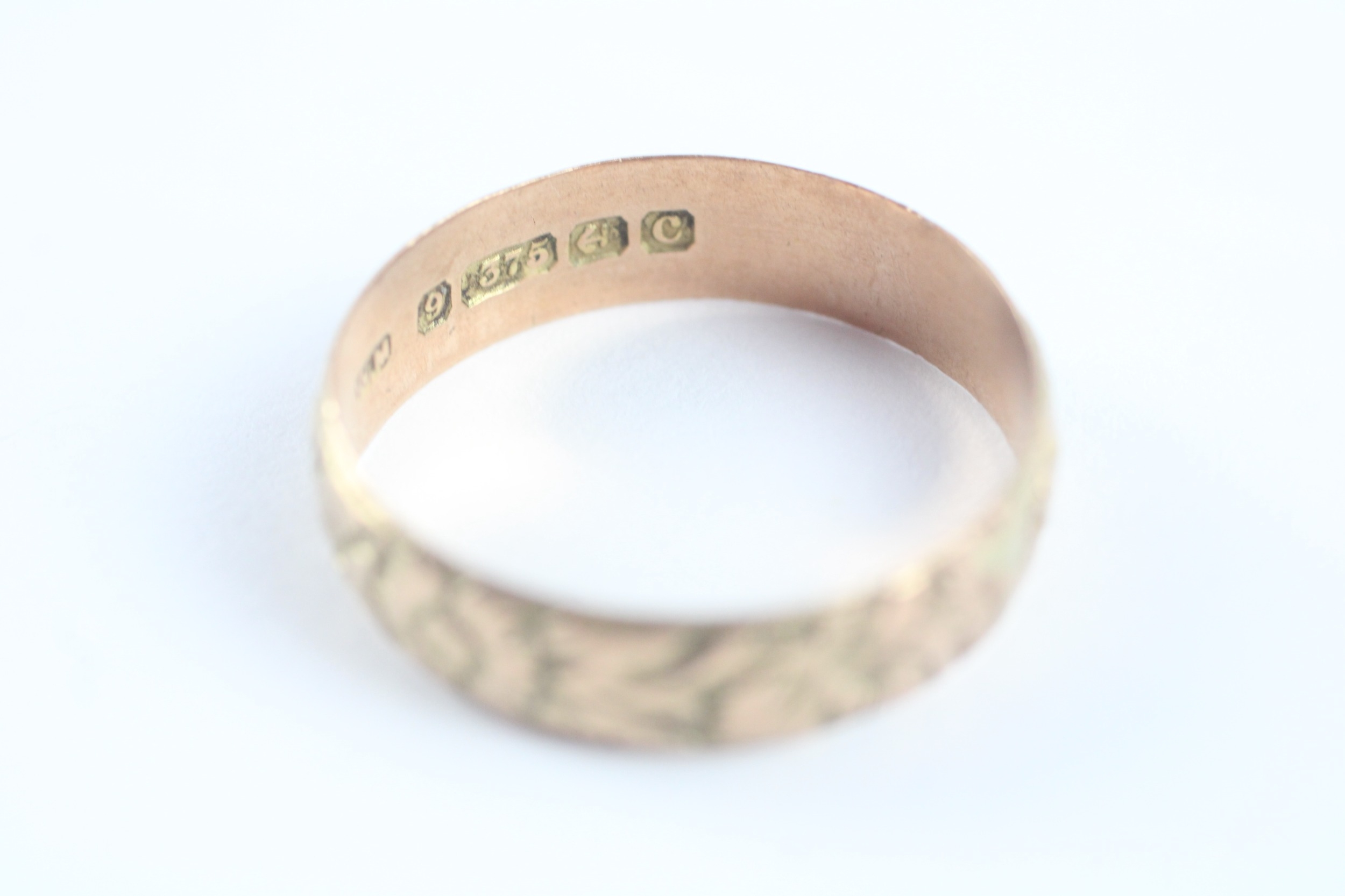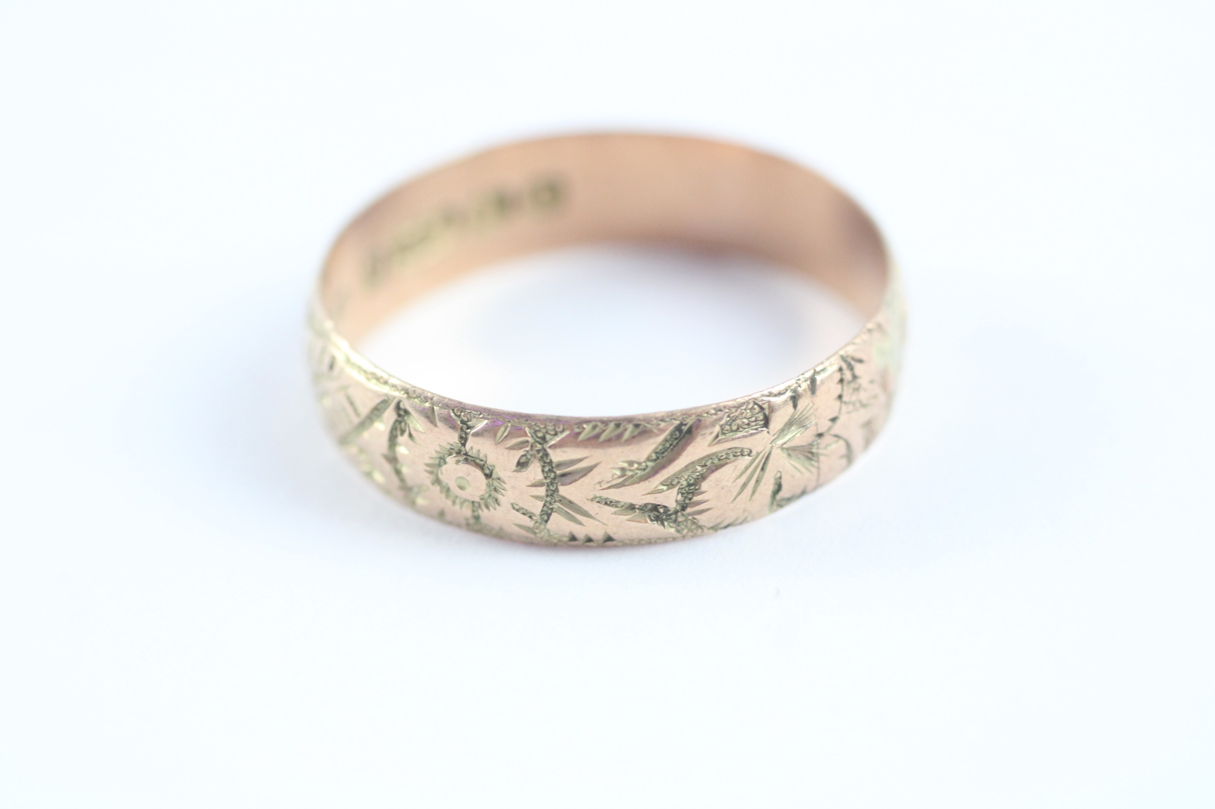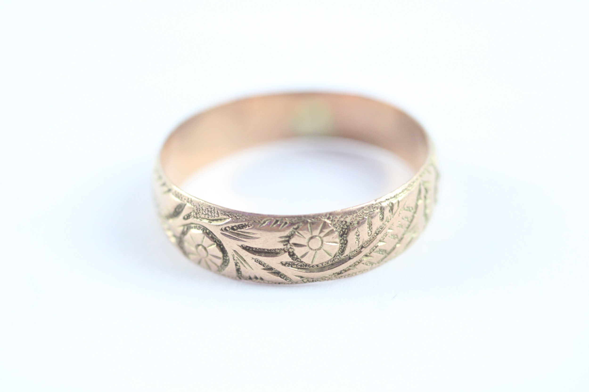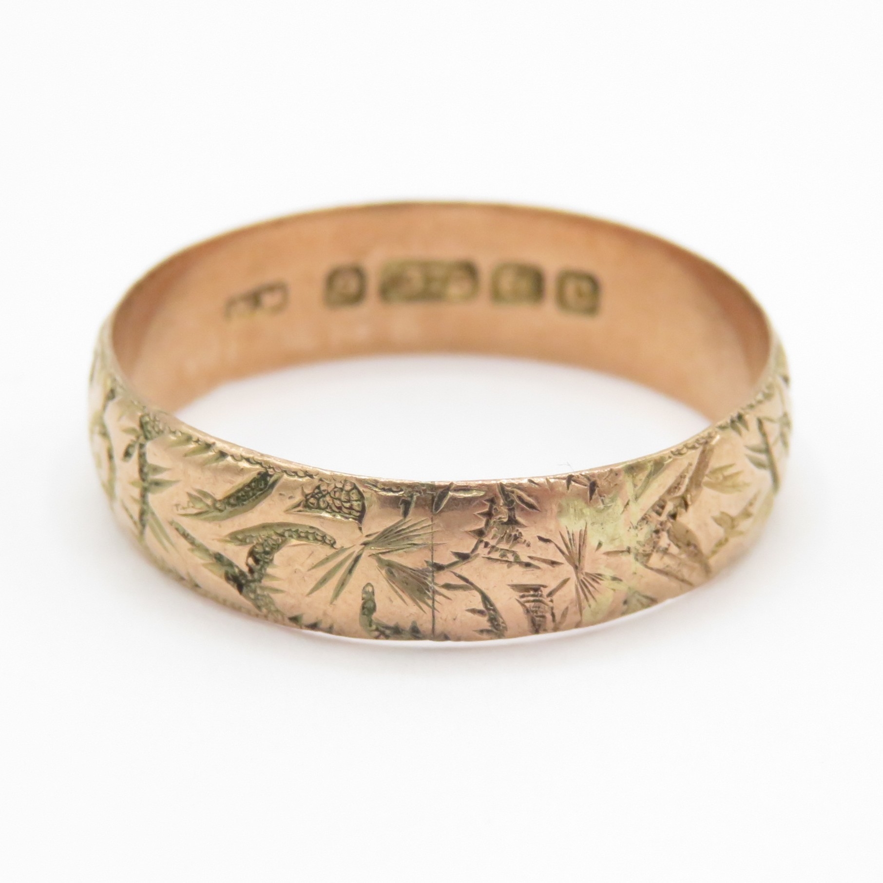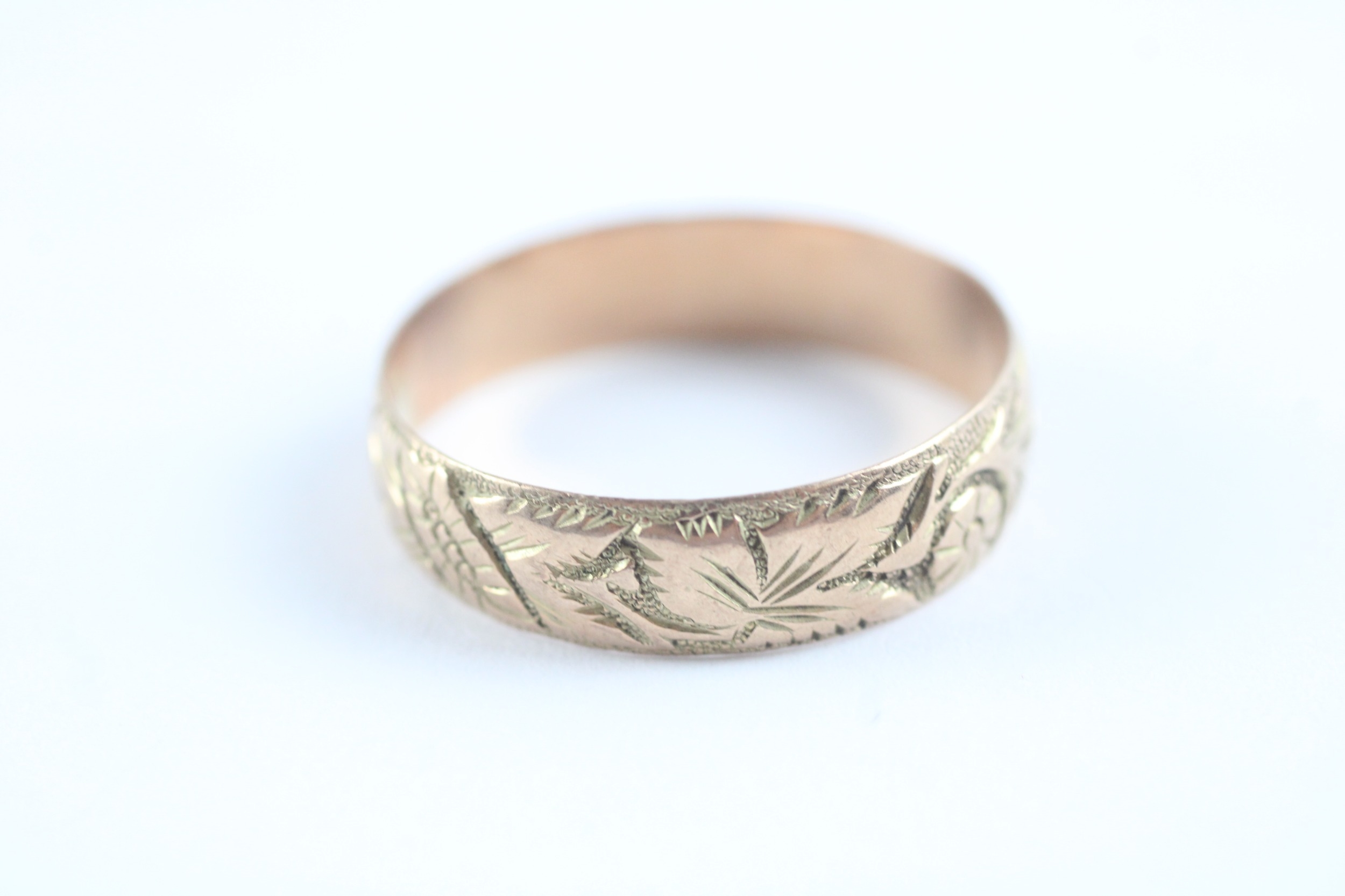 9ct gold antique foliate patterned wedding band (3.1g)