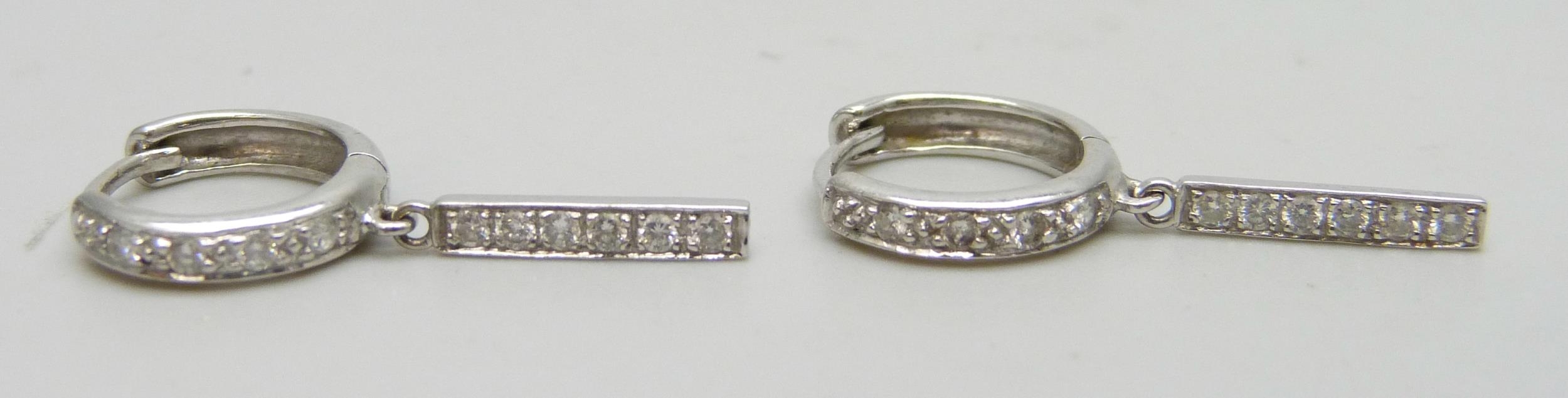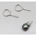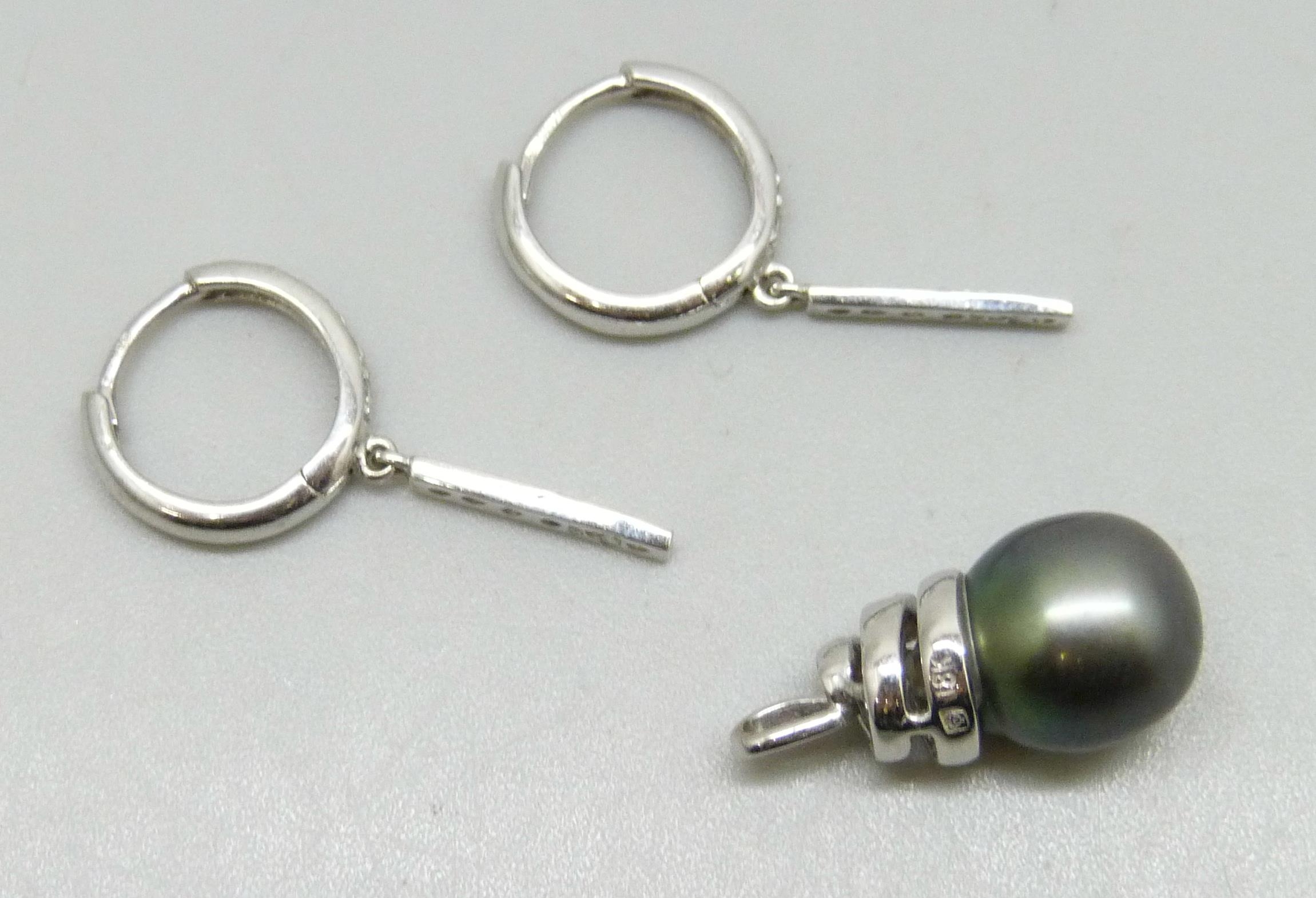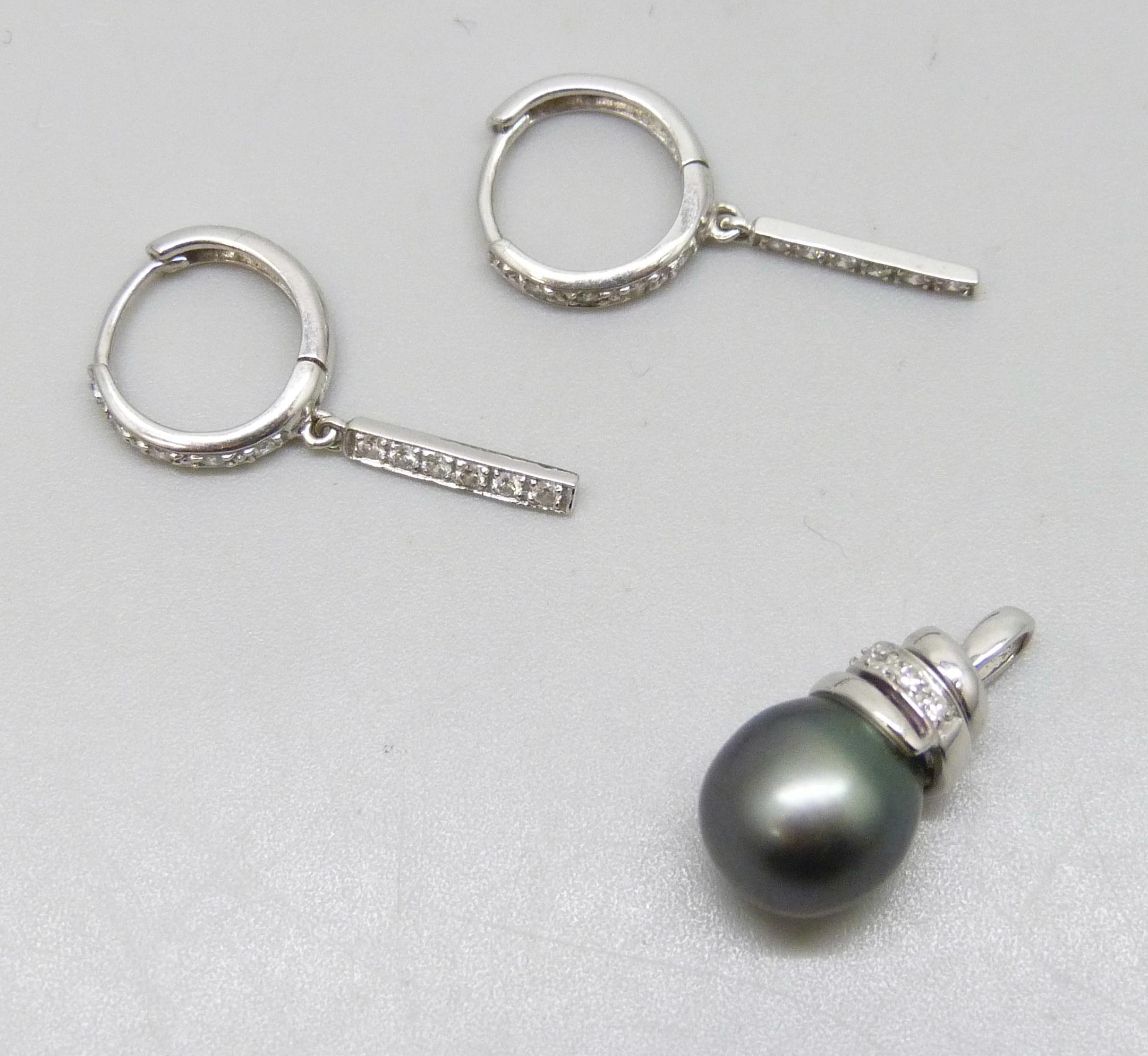 An 18ct white gold pearl pendant, 2.5g, 1.9cm, and a pair of 18ct white gold earrings, 2.5g