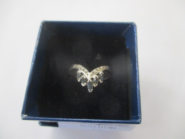 SILVER RING WITH BLUE STONES SIZE Q