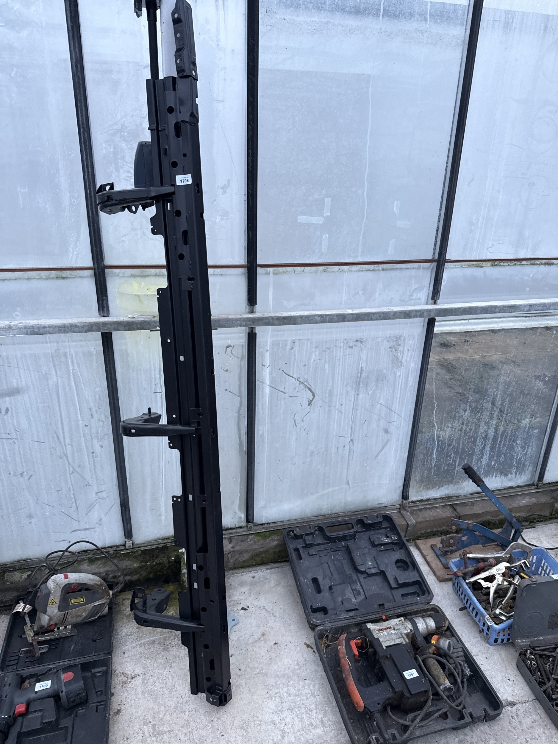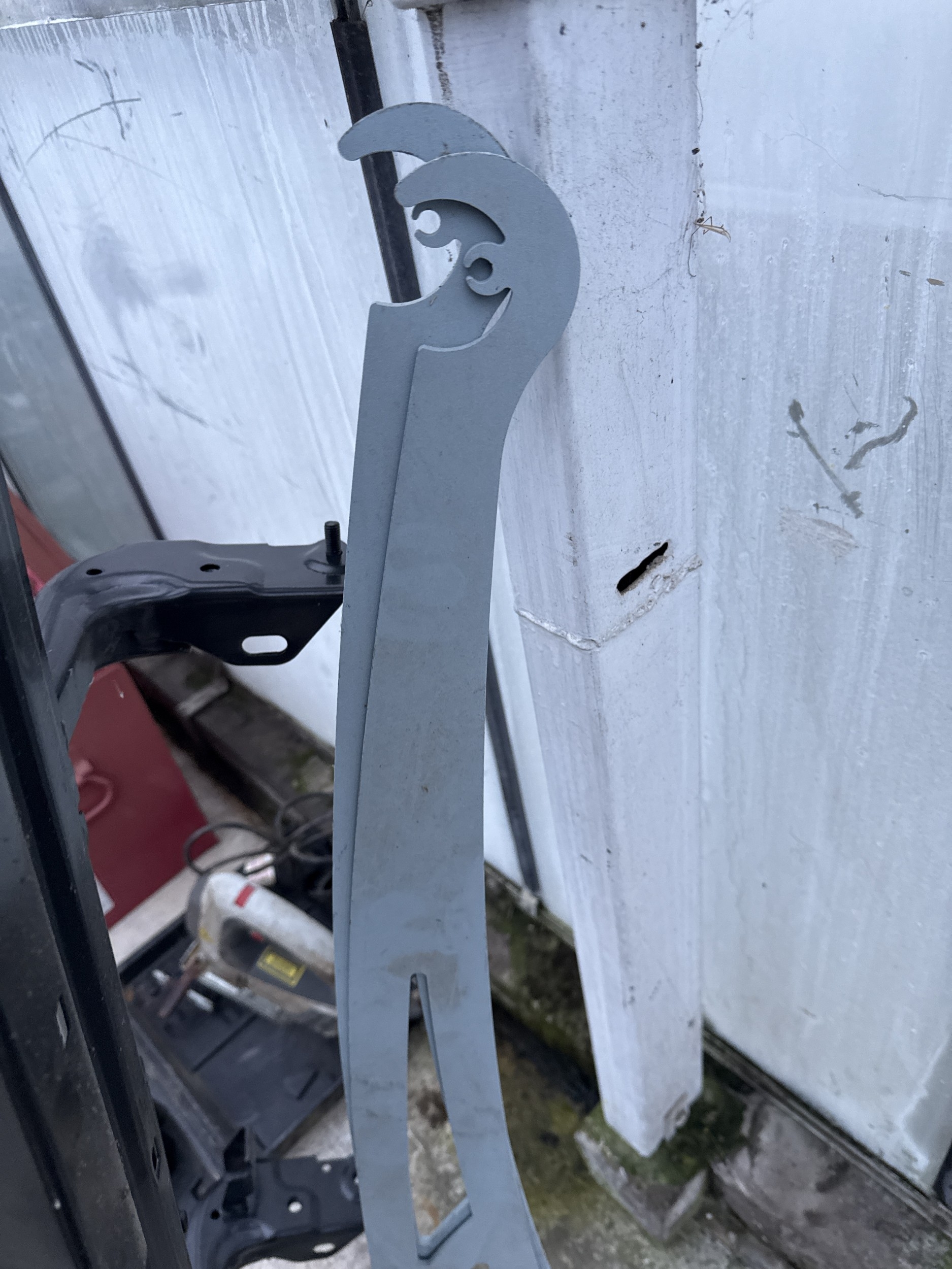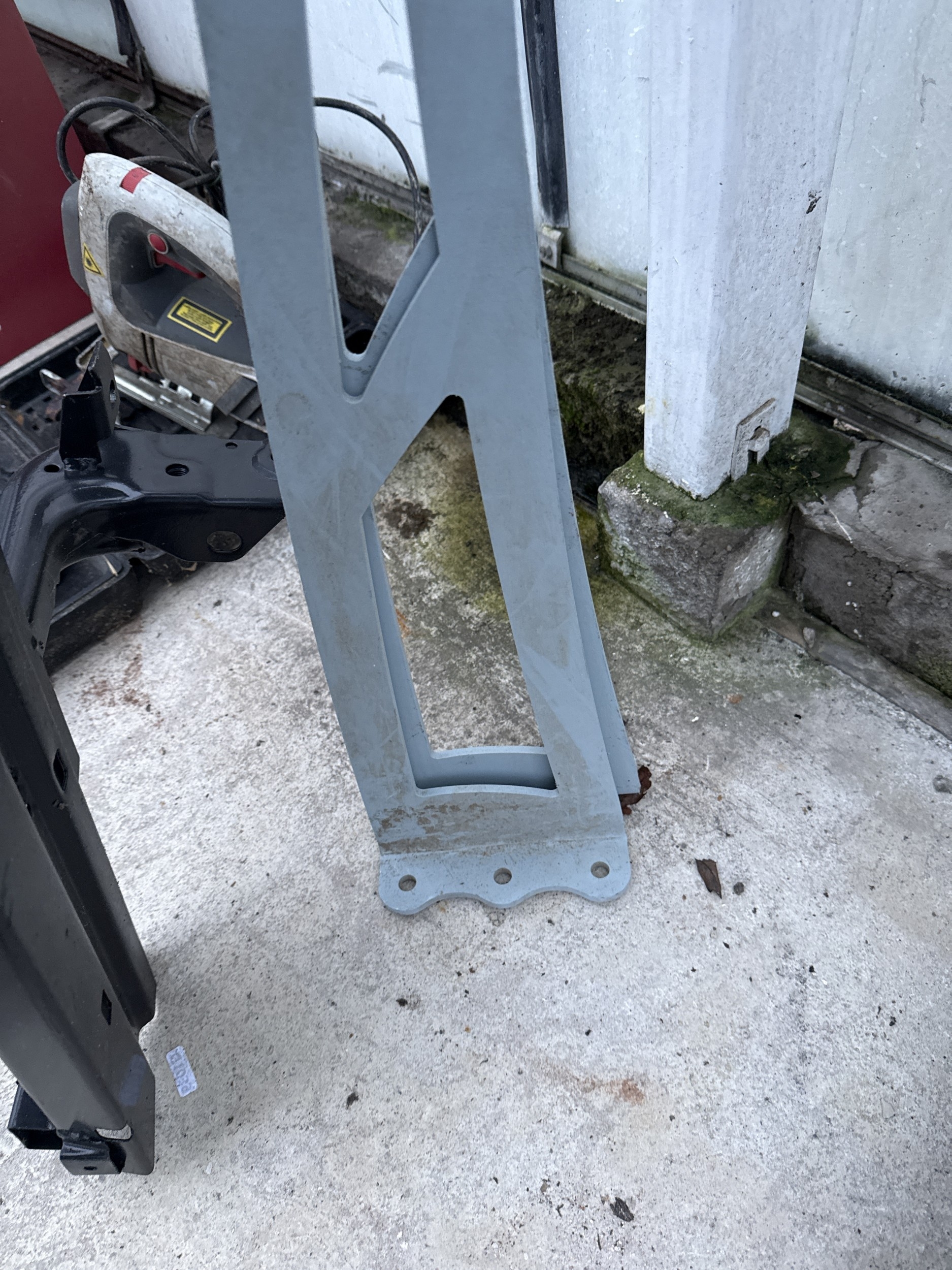 A VEHICLE STEP SIDE AND TWO METAL WALL BRACKETS