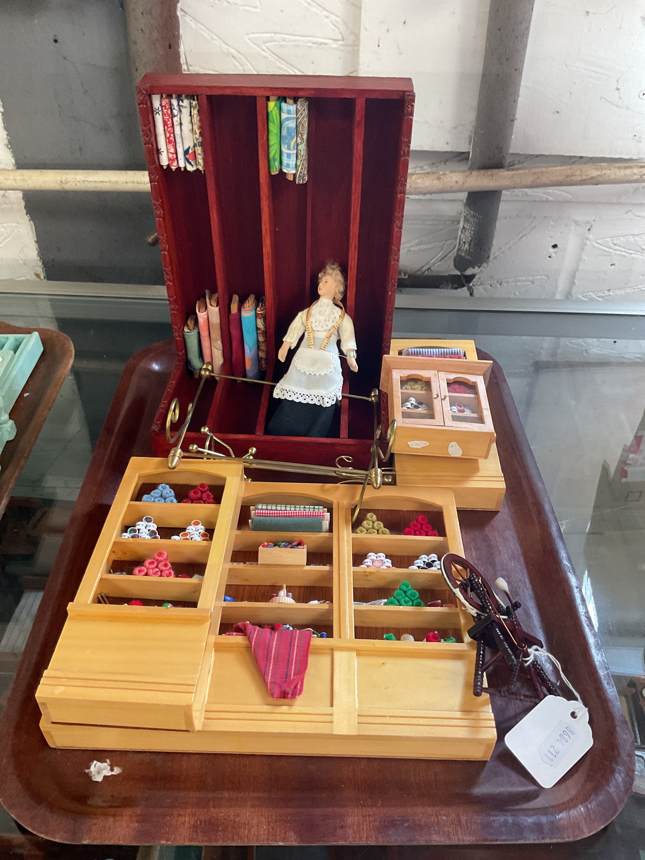 A mixed selection of haberdashery dolls house furniture