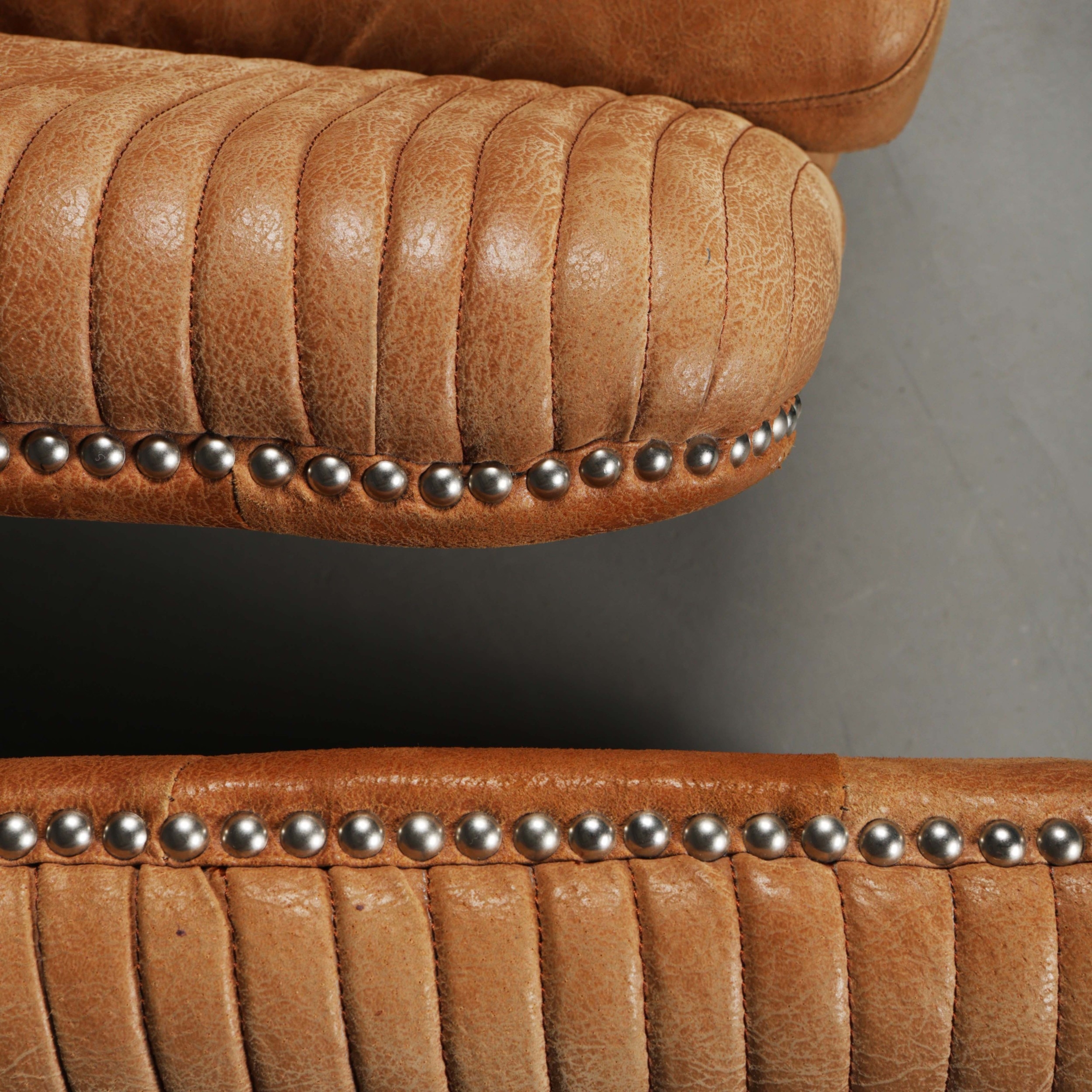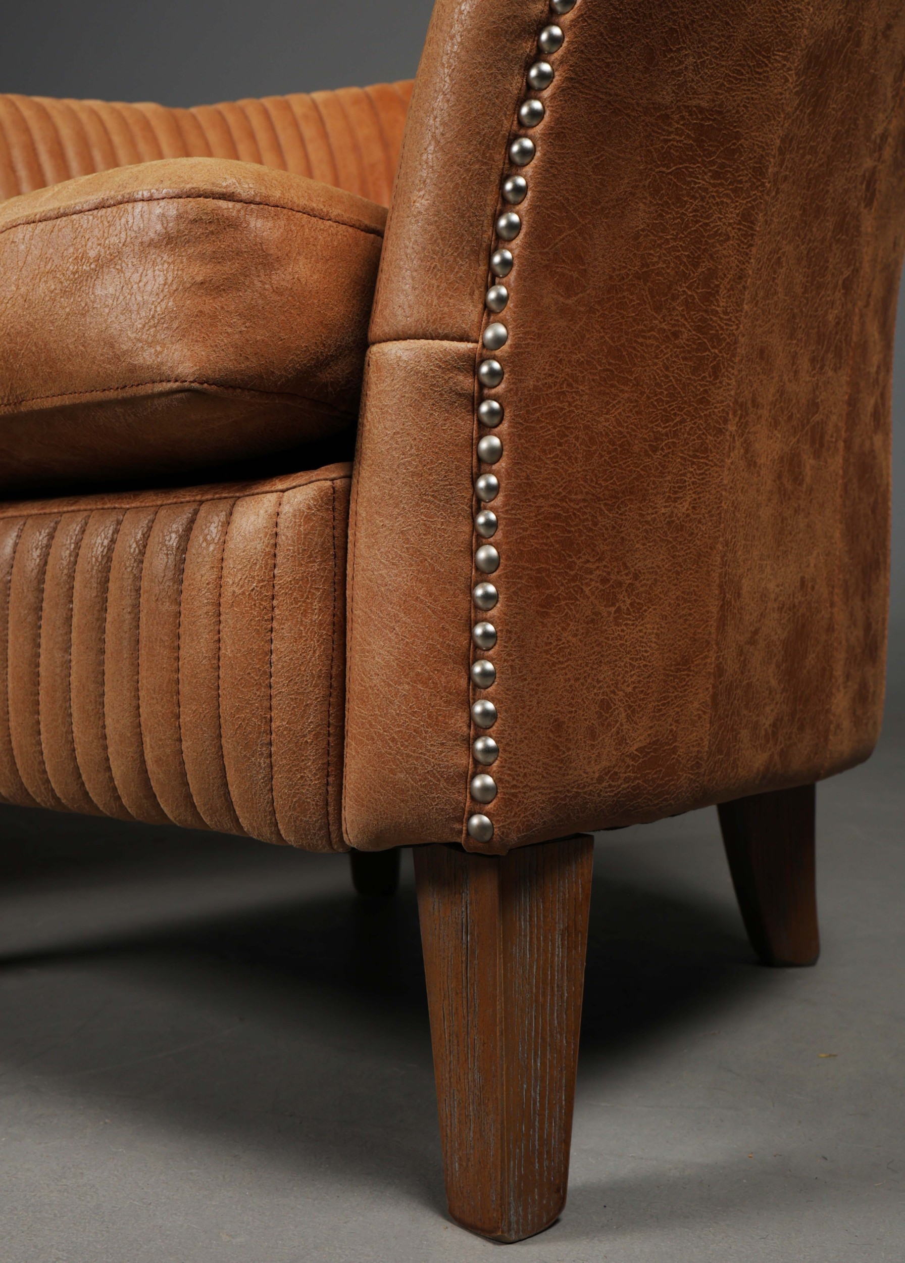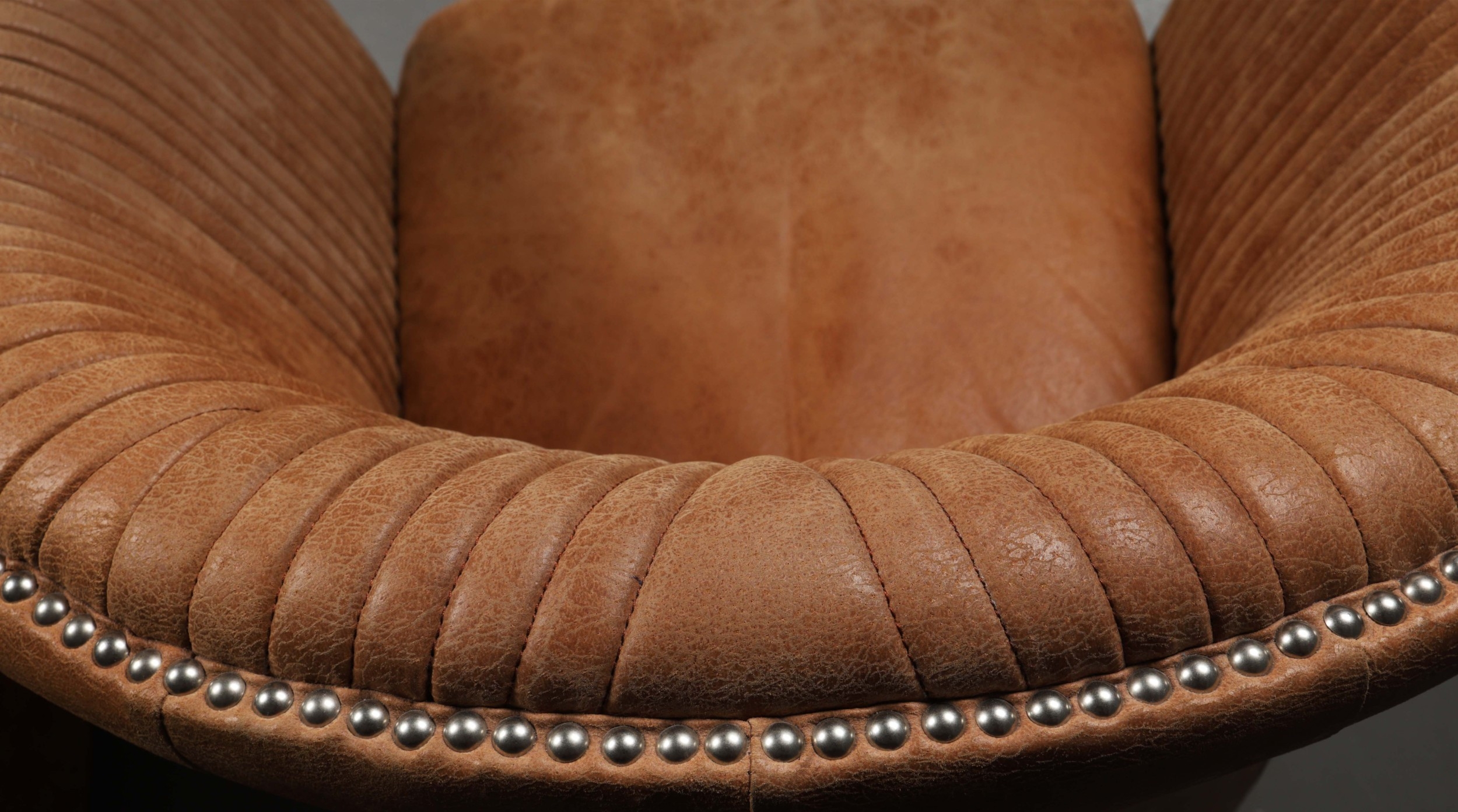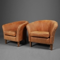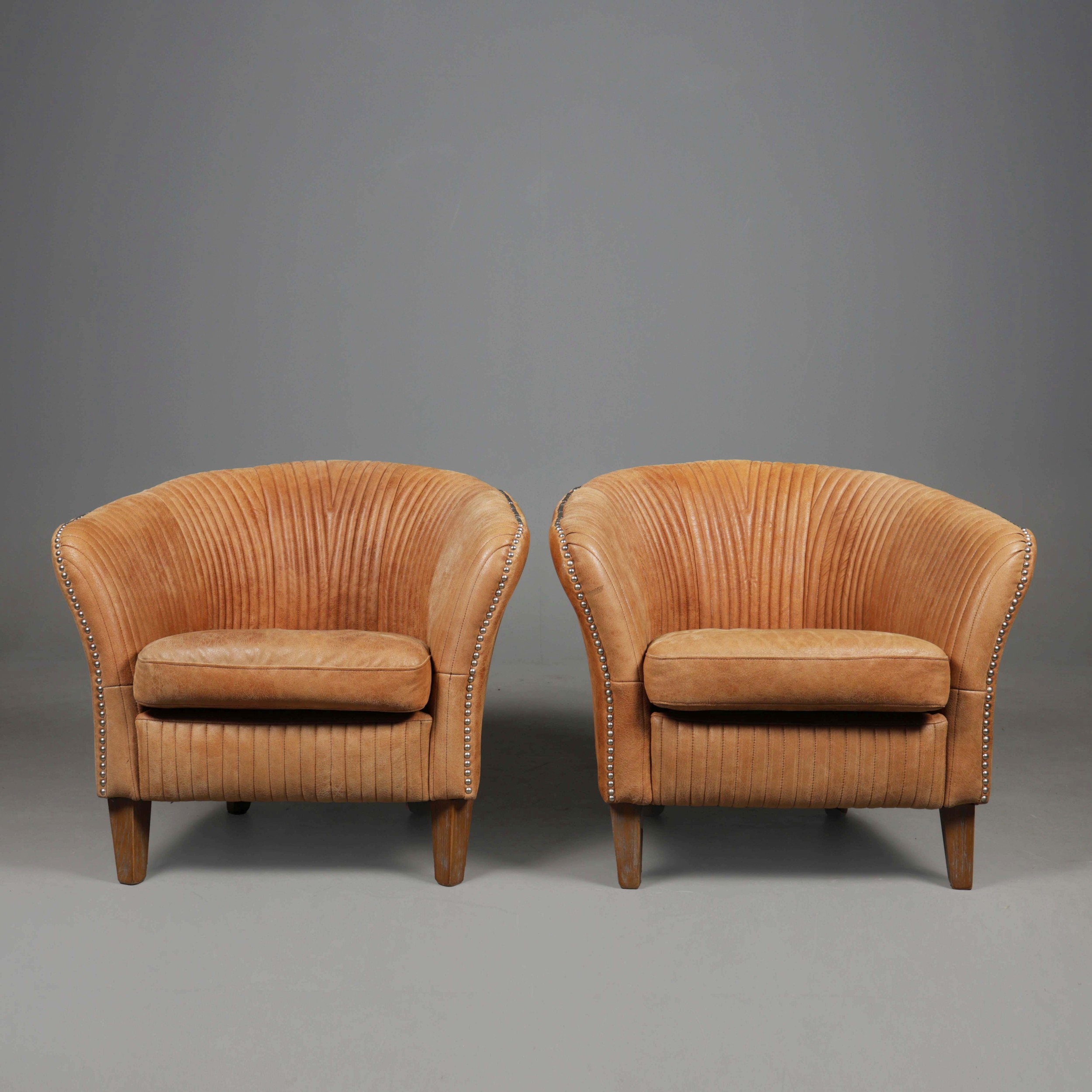 OKA CROSBY LEATHER TUB ARMCHAIRS, A PAIR. (2). 73cm H x 82cm W x 80cm D.