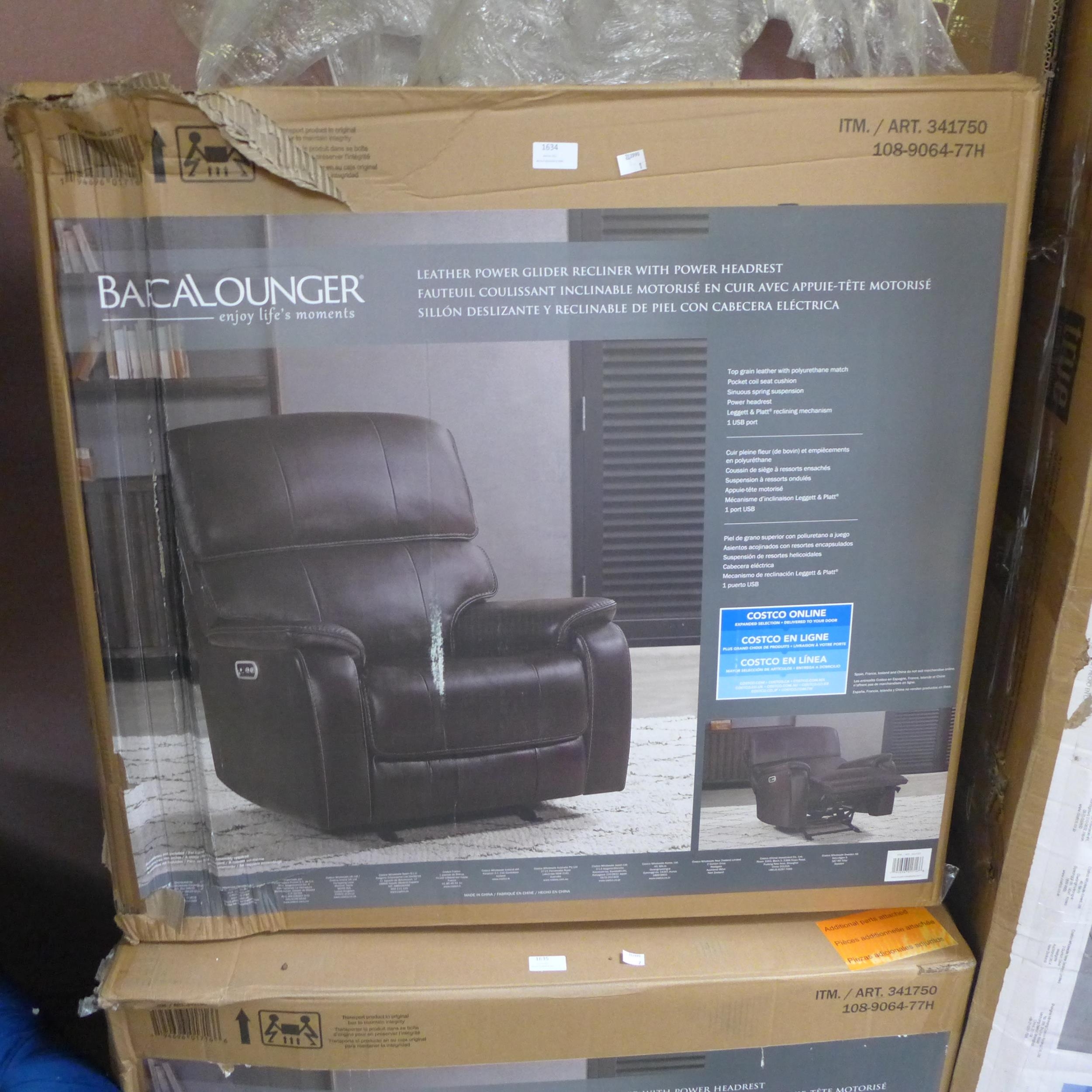 Barcalounger Bennett Brown Leather Power Glider Recliner with Power Headrest, Original RRP 541.66 + vat (4114-2) * This lot is subject to vat