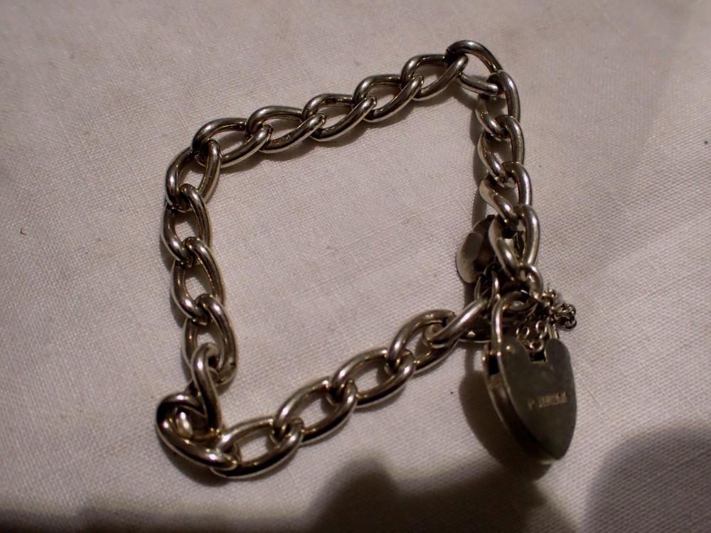 Hallmarked silver padlock wrist chain, L: 18 cm. UK P&P Group 1 (£16+VAT for the first lot and £2+VAT for subsequent lots)
