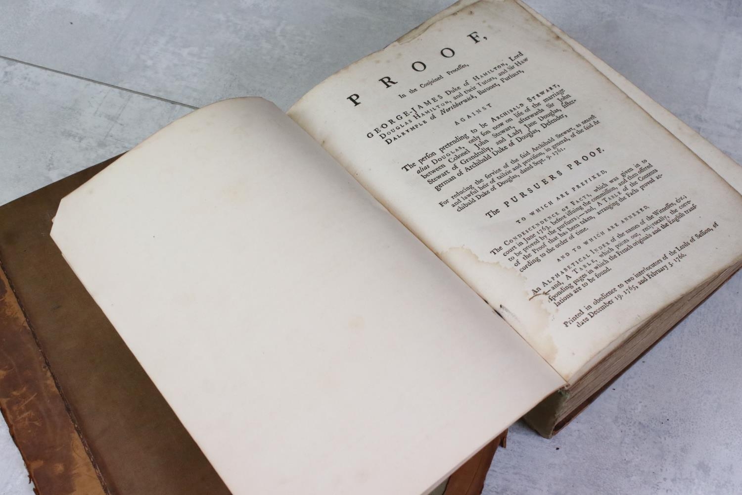 Douglas, Proof against the pursuers proof, printed 1765 and 1766, comprising the correspondence of facts, proved by George James, Duke of Hamilton, boards detached