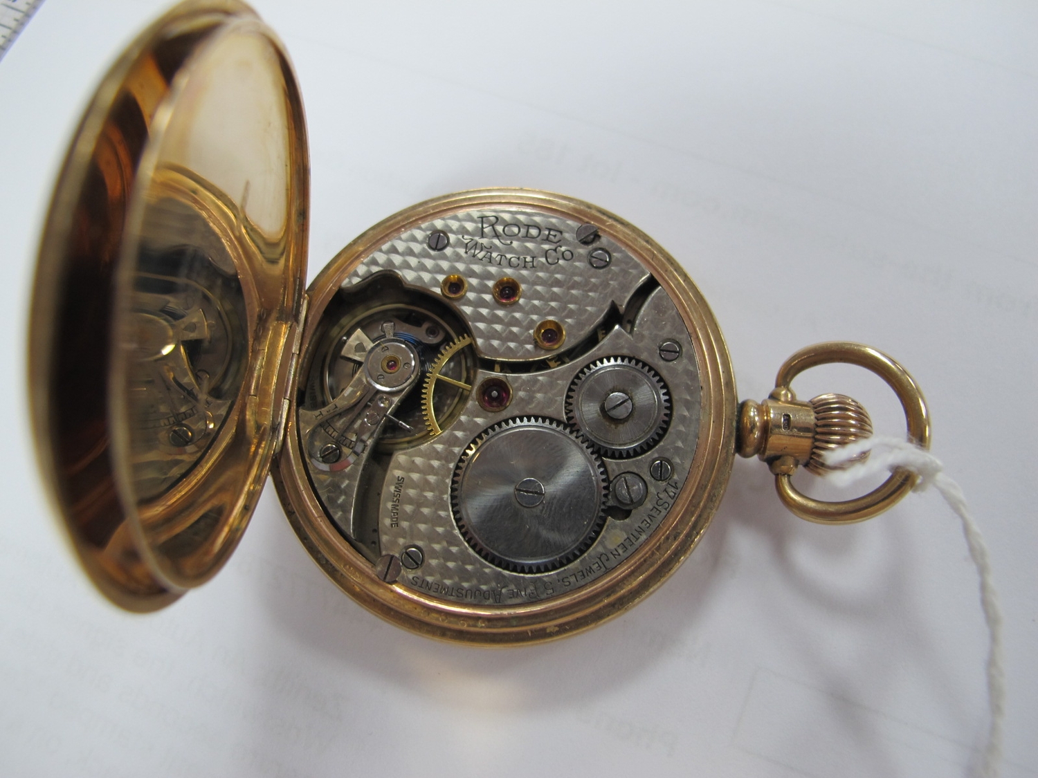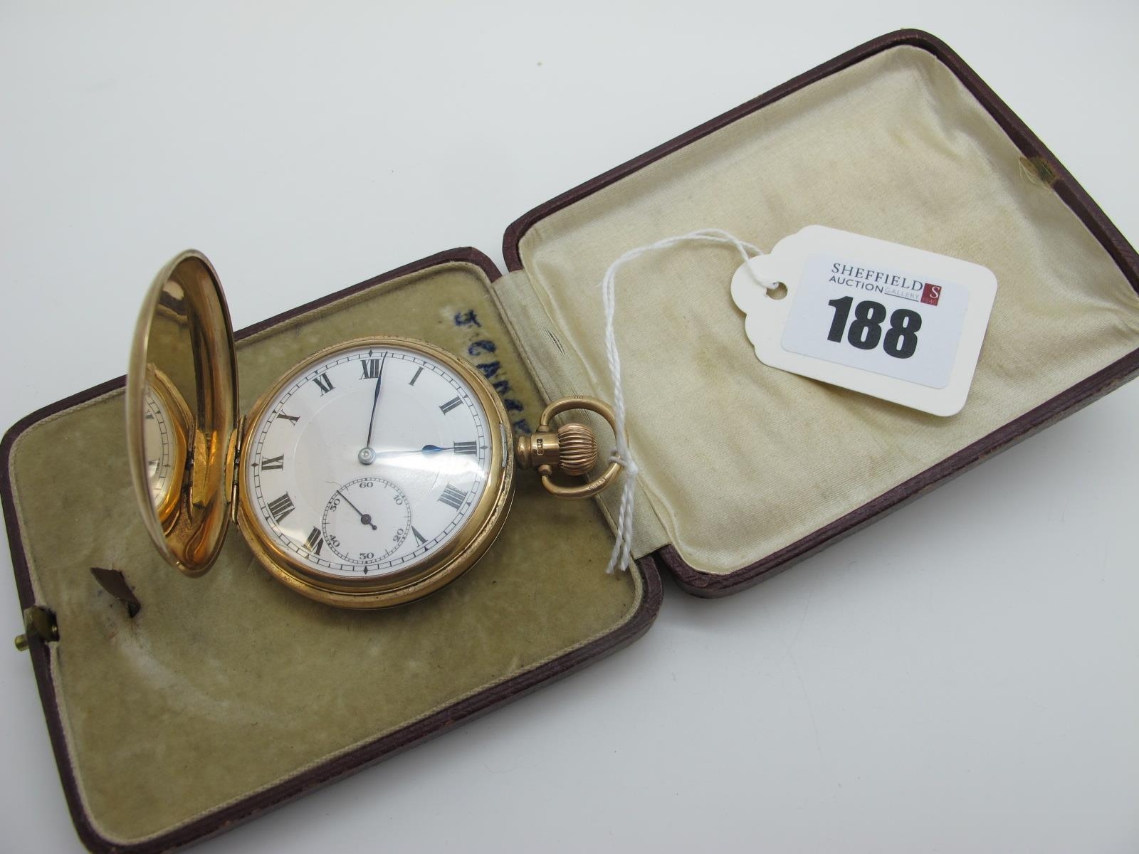 A 9ct Gold Cased Hunter Pocket Watch, the white dial with black Roman numerals and seconds subsidiary dial, the movement stamped "Rode Watch Co", within plain case, Birmingham 1928.