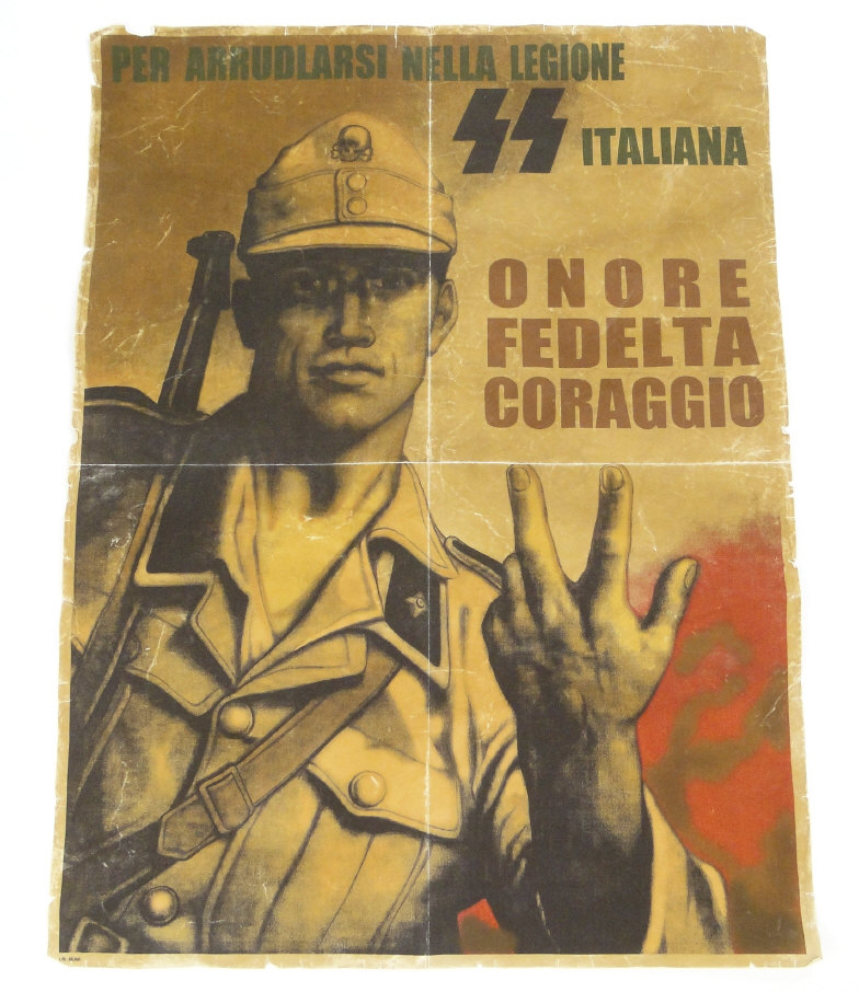 Military Waffen SS Italian Unit Nazi propaganda poster, 82cm x 60cm