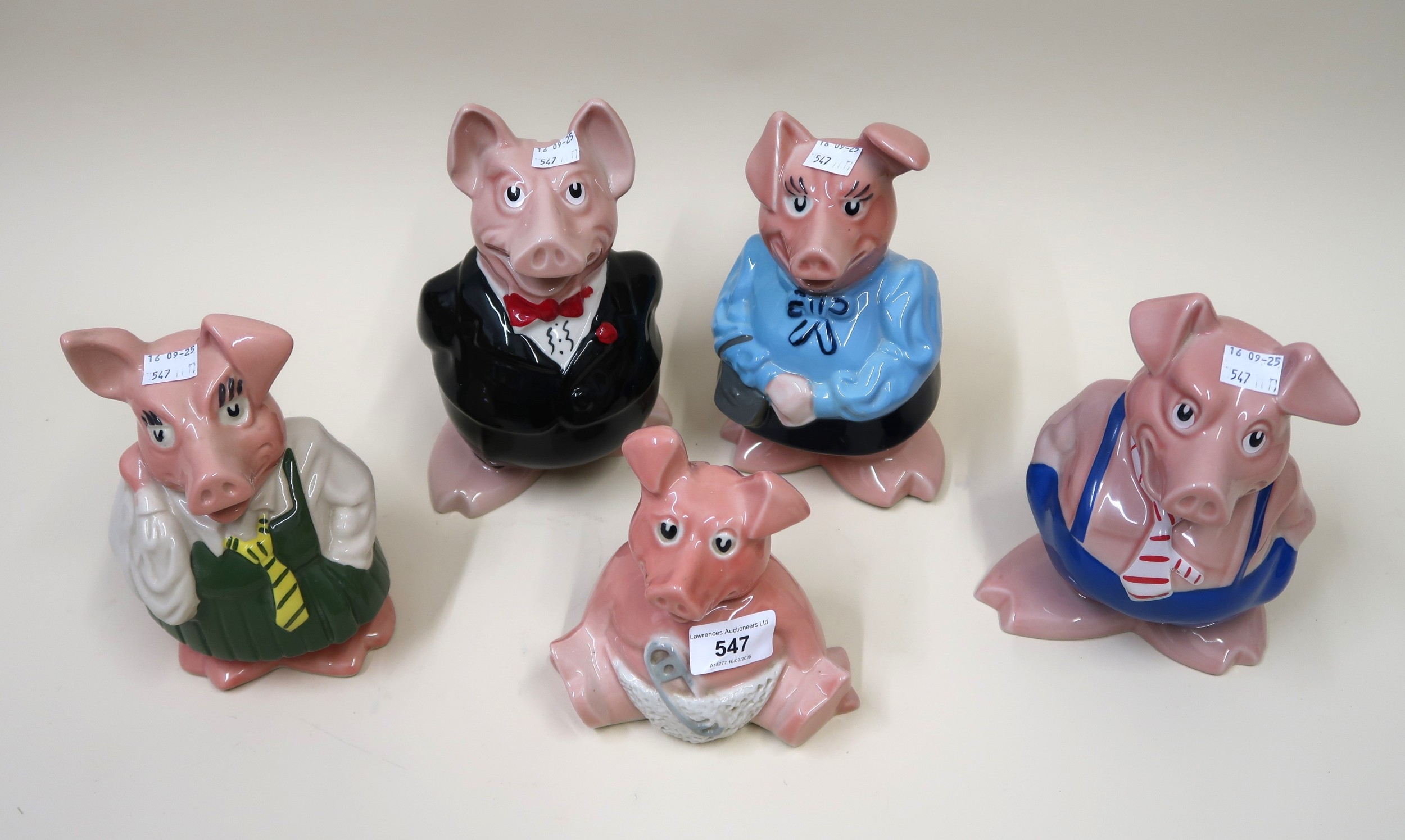 Set of five Wade Natwest piggy banks
