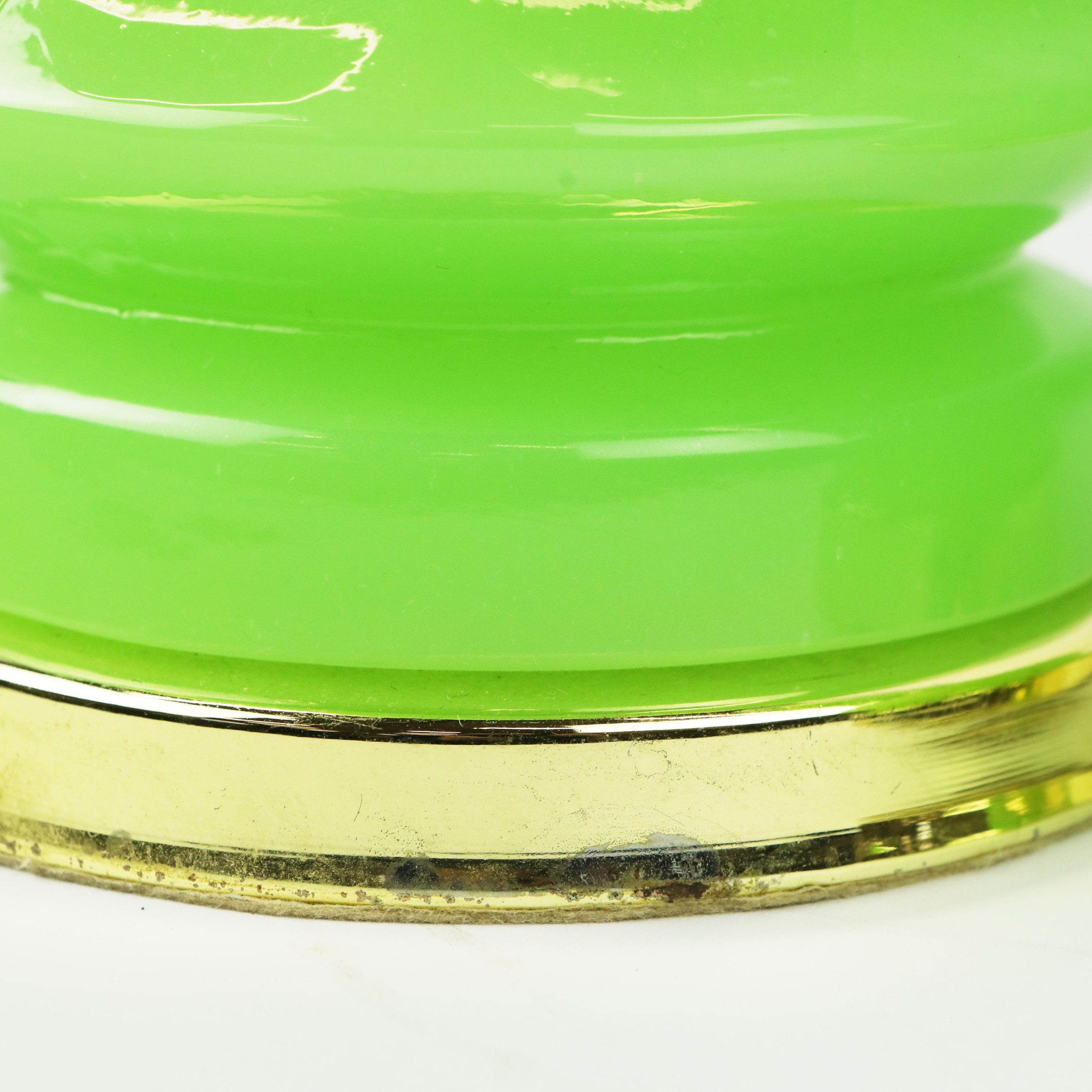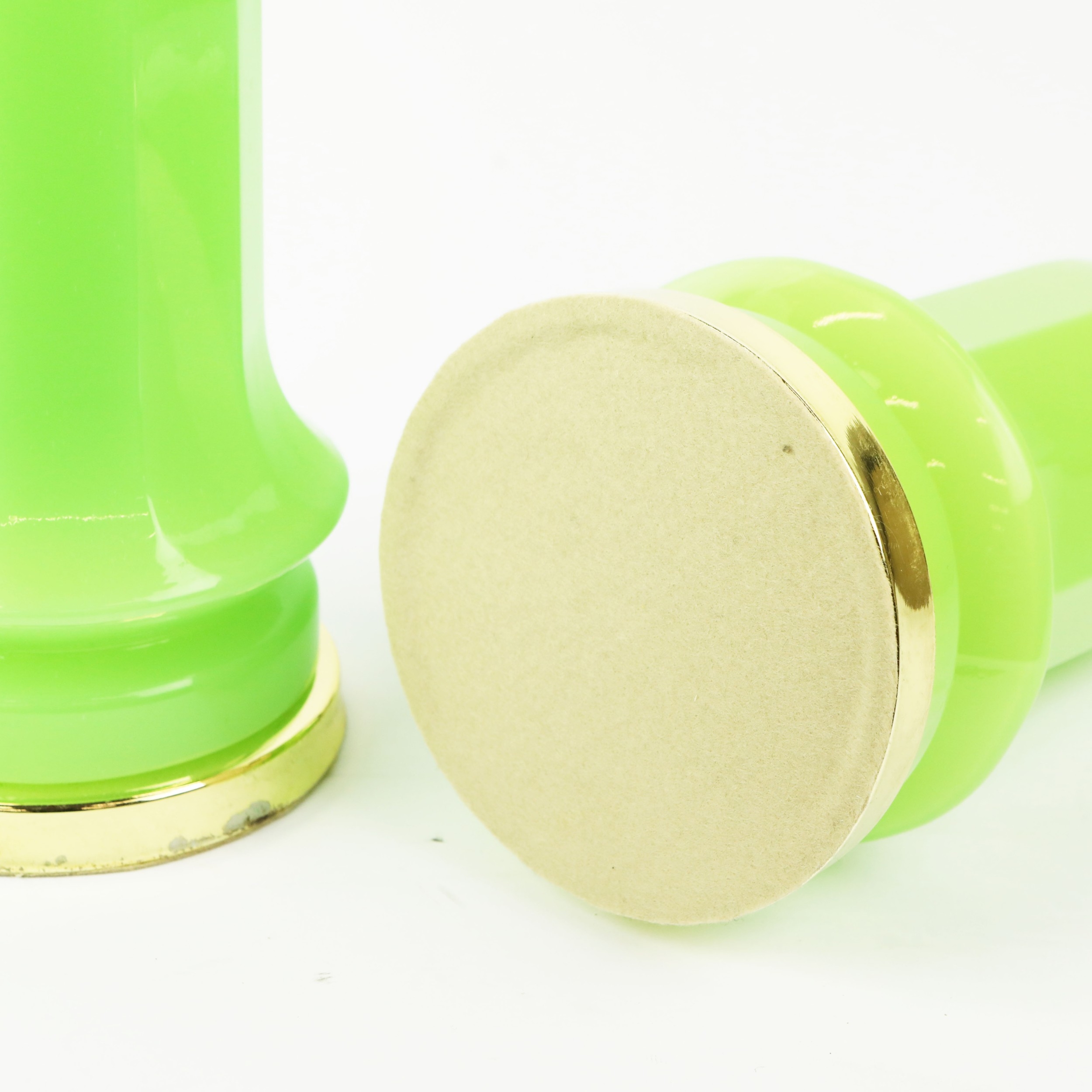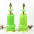CENEDESE MURANO GLASS TABLE LAMPS, A PAIR. opaline green glass, 41cm H approx. (2).